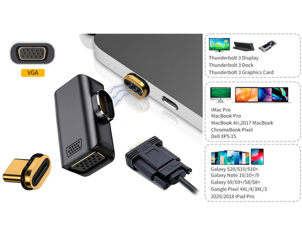 Адаптер USB Type-C to VGA позволяет подключать устройства с интерфейсом USB Type-C к порту VGA. Разъем VGA - это стандарт интерфейса цифрового дисплея для подключения аудио- и видеооборудования. Поддерживается разрешение HD 1080P (1920 X 1080 пикселей). Адаптер можно использовать для подключения компьютера к дисплею или системе домашнего кинотеатра. Магнитный адаптер защищает контакты устройств от износа и механических повреждений. Сильная магнитная сила обеспечивает быстрое, удобное и безопасное подключение/отключение. |