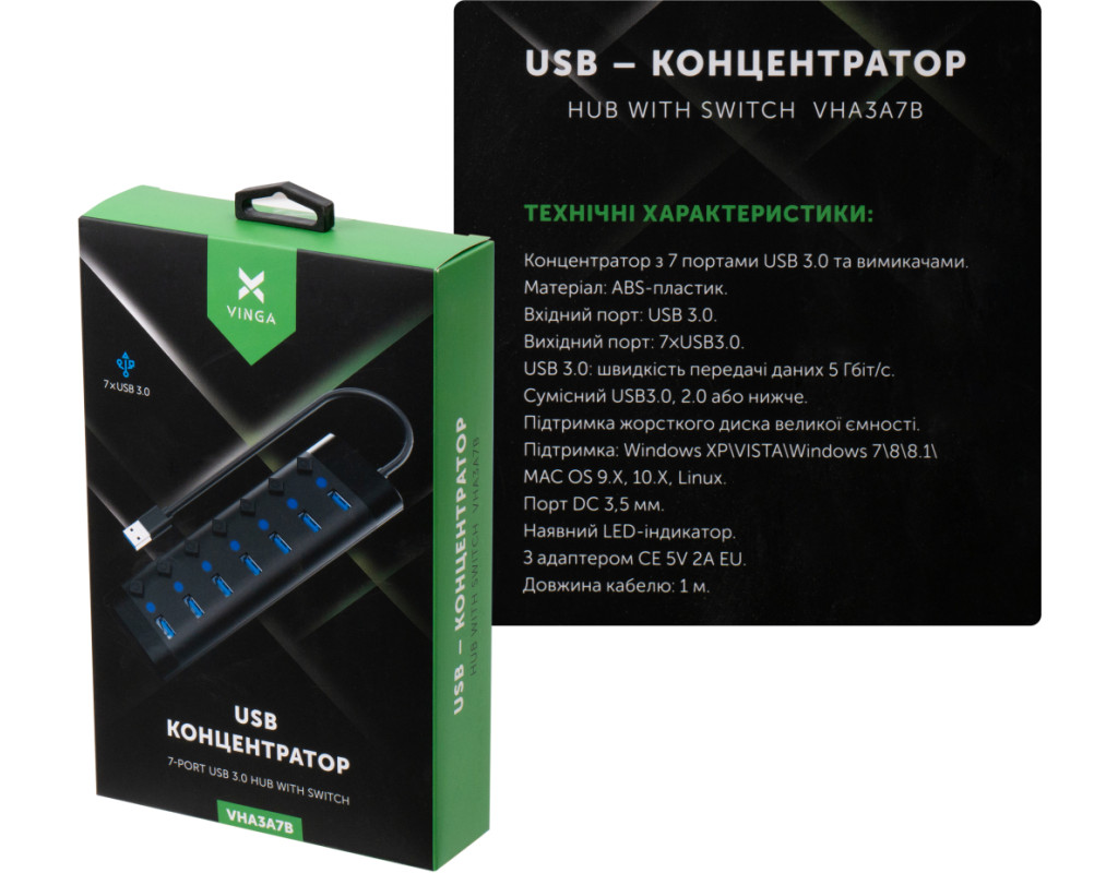 | Концентратор Vinga USB3.0 to 7*USB3.0 1m cable with Switch and Power Adapter (VHA3A7B) — это идеальное решение для тех, кто ценит качество и удобство в повседневном использовании. Это внешнее устройство оснащено интерфейсом USB 3.0, что обеспечивает высокоскоростной обмен данными между всеми вашими устройствами. Особым преимуществом является наличие семи USB 3.0 портов, каждый из которых оснащён выключателем, позволяющим управлять подключениями индивидуально. Дополнительное питание с блоком питания обеспечивает стабильную работу даже при максимальной нагрузке. Кабель длиной 1 м предоставляет свободу вашему рабочему пространству, позволяя гибко разместить концентратор на столе. Выбирайте Vinga для надежного и эффективного расширения возможностей вашего компьютера! |