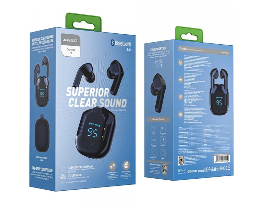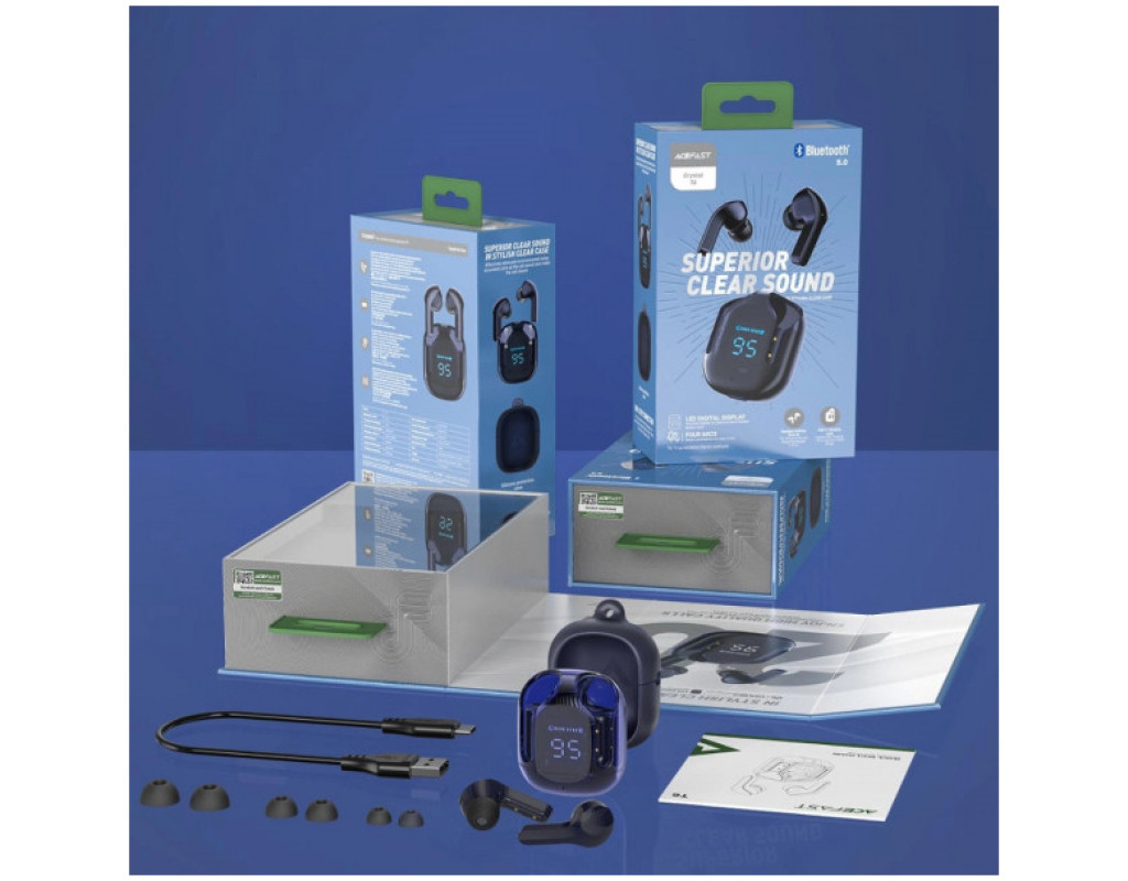 | Наушники Acefast T6 Sapphire Blue (6974316281542) — это виртуозное сочетание утонченного дизайна и современных технологий, которое станет вашим незаменимым спутником в мире качественного звука. Созданные для самых взыскательных аудиофилов, эти TWS (True Wireless Stereo) наушники предлагают беспроводное подключение, что чрезвычайно удобно при использовании с ноутбуком или телефоном, благодаря современному Bluetooth 5.0. Это обеспечивает стабильное и надежное соединение с вашим устройством в радиусе до 10 метров, позволяя вам наслаждаться музыкой без ограничений. Дизайн Acefast T6 очаровывает своим футуристическим прозрачным исполнением в изысканном сапфирово-голубом оттенке. Вакуумные внутриканальные наушники с силиконовыми амбушюрами предлагают комфортное и плотное прилегание, которое изолирует вас от внешних шумов и позволяет полностью сосредоточиться на музыке. С мощными 6-миллиметровыми динамиками, эти наушники гарантируют удовольствие от великолепного и сбалансированного звука, где плавные высокие частоты, четкие средние и глубокие басы создают богатый и насыщенный аудио спектр. Интегрированный микрофон обеспечивает высокую четкость голоса при звонках, что делает общение комфортным и понятным. Благодаря технологии шумоподавления ENC, ваши звонки останутся четкими даже в шумной среде. Это даёт возможность сосредоточиться на важных разговорах без лишних помех. Наушники оснащены сенсорными элементами управления, которые позволяют легко переключать треки, регулировать громкость и отвечать на звонки лёгким прикосновением. Защита стандарта IPX4 делает Acefast T6 надёжными в условиях активного использования, ведь они устойчивы к поту и брызгам, что уместно во время тренировок или неблагоприятной погоды. Время автономной работы впечатляет: до 4 часов непрерывного звучания на одном заряде, а вместе с зарядным футляром ёмкостью 500 мАч наушники способны работать до 20 часов. Лишь один час — и ваше устройство снова готово к использованию, благодаря интерфейсу зарядки USB Type-C. Удобный цифровой дисплей на корпусе всегда покажет уровень заряда, давая вам уверенность в готовности наушников к действию. Комплект включает четыре пары сменных вкладышей, что позволяет настроить наушники под ваши индивидуальные параметры для максимального комфорта. Размещённые в прочном силиконовом футляре, они не только впечатляют своим продуманным дизайном, но и демонстрируют практичность в ежедневном использовании. Наушники Acefast T6 — это настоящий выбор для тех, кто ценит качество, стиль и технологии в одном флаконе. |