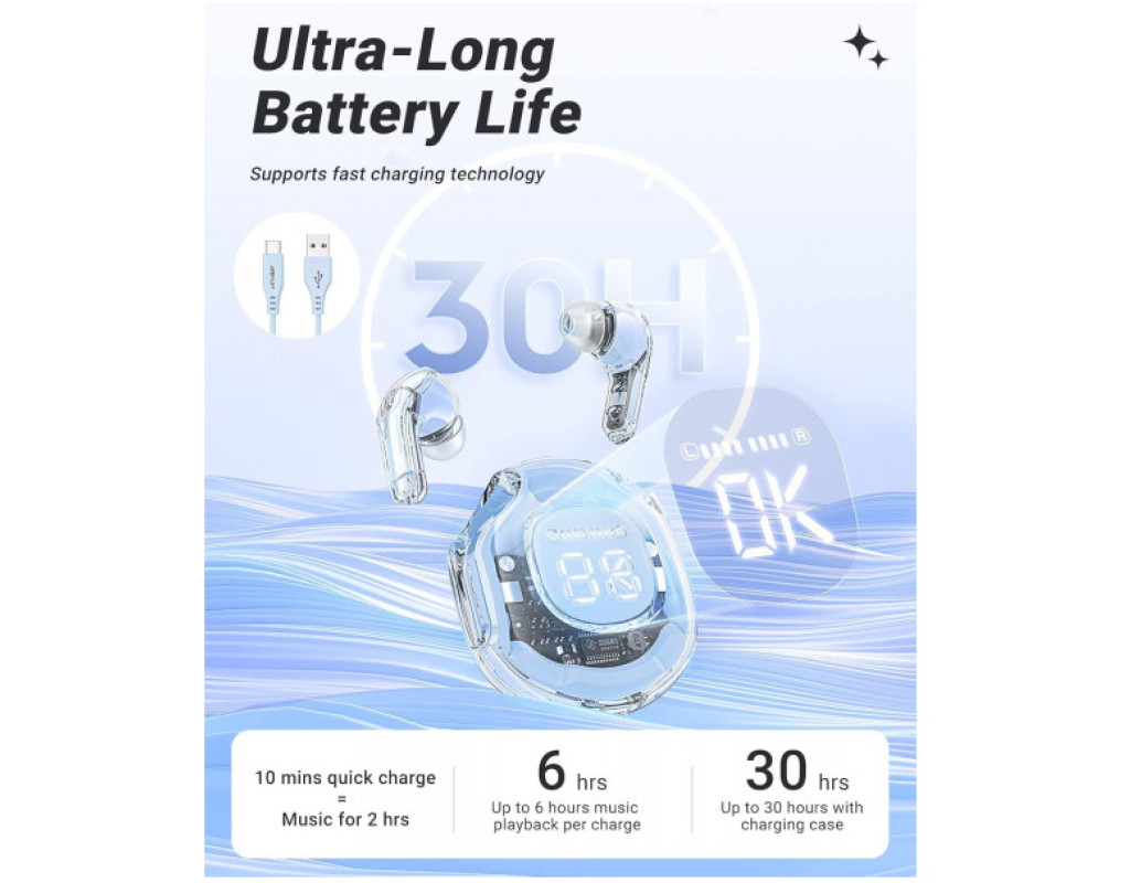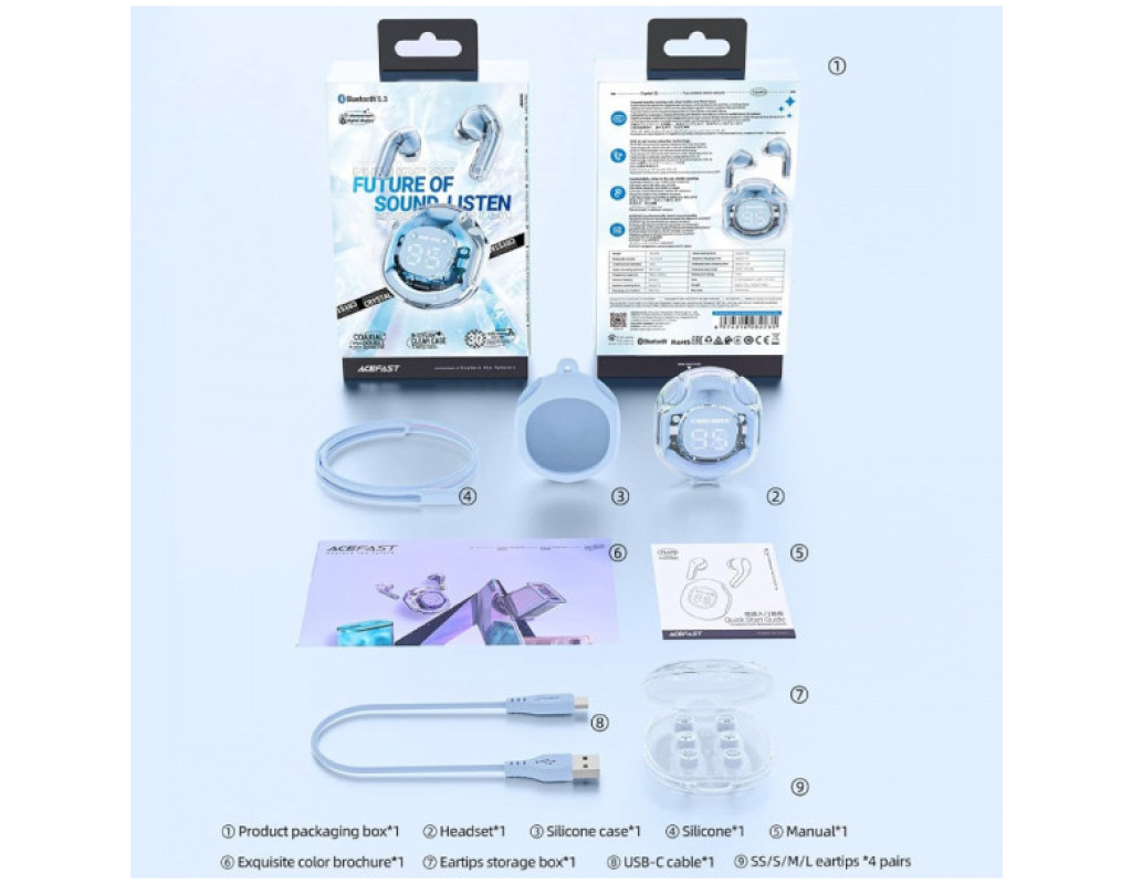 | Наушники Acefast T8 Ice Blue созданы для настоящих ценителей качественного звука и стильного дизайна. Эти вакуумные внутриканальные TWS наушники выделяются своим элегантным прозрачным голубым оформлением, которое мгновенно привлекает внимание и добавляет шарма любому образу. Но основная их ценность — это безупречное воспроизведение звука благодаря высококлассным двойным коаксиальным драйверам. Большая динамика обеспечивается 10-миллиметровыми алюминиево-магниевыми динамиками, в сочетании с твитерами с титановыми куполами, которые воспроизводят каждую ноту с высокой точностью. Высокие ноты чисты, средние оптимальны, а басы — насыщенные и глубокие, создавая полный аудиоспектр, который перенесет вас в мир настоящего аудиоудовольствия. Беспроводное подключение с помощью новейшей технологии Bluetooth 5.3 обеспечивает стабильный сигнал даже на расстоянии до 10 метров. Инновационная LDS антенна гарантирует отличную передачу сигнала без помех, что чрезвычайно важно для активных пользователей телефоном или ноутбуком. Уникальность этих наушников заключается в системе активного шумоподавления: двойные микрофоны вместе с технологией шумоподавления SVE AI эффективно отсекают окружающий шум, гарантируя четкое общение и восприятие звука даже в шумной среде. Удобство в использовании дополняет чувствительное сенсорное управление, которое позволяет легко контролировать громкость, переключать треки или отвечать на звонки одним касанием. Водостойкость по стандарту IPX4 делает наушники надежным спутником во время дождливой погоды или интенсивных тренировок. Материал амбушюр — мягкий силикон, обеспечивает комфорт даже при длительном ношении. Одним из особых преимуществ Acefast T8 является их исключительная автономность: без подзарядки наушники работают до 7 часов, а вместе с зарядным кейсом емкостью 480 мАч эта цифра увеличивается до 30 часов. Функция быстрой зарядки позволяет всего за 10 минут получить до двух часов прослушивания, что чрезвычайно удобно в ритме современной жизни. Цифровой дисплей на внутренней части футляра всегда информирует о уровне заряда, так что вы никогда не останетесь без музыки в нужный момент. Acefast T8 Ice Blue — это не просто наушники, а настоящий шедевр аудиотехнического искусства, который удовлетворит все требования к звуку, комфорту и стилю. Пусть каждый ваш день проходит под аккомпанемент любимых мелодий в максимальном качестве! |