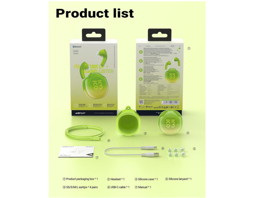 | Наушники Acefast T9 Avocado Green (6974316282556) — это безупречный выбор для поклонников настоящего качества звука и комфорта. Благодаря технологии True Wireless Stereo (TWS) вы больше не зависите от проводов. Наушники обеспечивают беспроводное подключение через новейшую версию Bluetooth 5.3, что гарантирует быстрое и стабильное соединение на расстоянии до 10 метров. Вы сможете наслаждаться любимой музыкой, общаться без ограничений и заниматься любой деятельностью, не беспокоясь о качестве связи. Вакуумная конструкция наушников Acefast T9 гарантирует надежное прилегание. Силиконовые амбушюры не только добавляют комфорт во время длительных сеансов прослушивания, но и обеспечивают насыщенное звучание благодаря закрытому акустическому оформлению. Технология активного шумоподавления SVE AI позволяет вам полностью погрузиться в мир музыки, отсекая внешние шумы. Это делает звук глубоким и детализированным, а разговоры — четкими, даже в условиях городского шума. Наушники оснащены встроенным микрофоном, что улучшает качество связи. Лишние шумы фильтруются, поэтому ваш голос во время звонков звучит четко. Элементарное сенсорное управление позволяет менять громкость, переключать треки или отвечать на звонки с помощью одного касания, что делает использование еще удобнее. Acefast T9 отличаются отличной автономностью. Одной зарядки хватает на 6,5 часов работы, а с зарядным футляром, который имеет емкость 480 мАч, — до 30 часов непрерывного функционирования. Современный интерфейс зарядки USB Type-C обеспечивает быструю и удобную зарядку. Всего 10 минут подзарядки обеспечат вас музыкой в течение двух часов. Встроенный цифровой дисплей на зарядном футляре информирует об уровне заряда, что гарантирует непрерывное звучание ваших любимых мелодий. Стильный дизайн в цвете Avocado Green не оставит никого равнодушным, добавляя яркости вашим повседневным образам. Соответствие стандарту IPX4 делает наушники устойчивыми к поту и влаге, позволяя использовать их во время тренировок или прогулок на улице даже в дождливую погоду. Acefast T9 — это не просто наушники, а стильный и функциональный аксессуар для тех, кто ценит высокое качество и инновационные решения в одном устройстве. Почувствуйте свободу движения и наслаждение от насыщенного звучания, выбирая Acefast T9 Avocado Green, и добавьте немного эксклюзивности своему дню благодаря их эстетике и функциональности. |