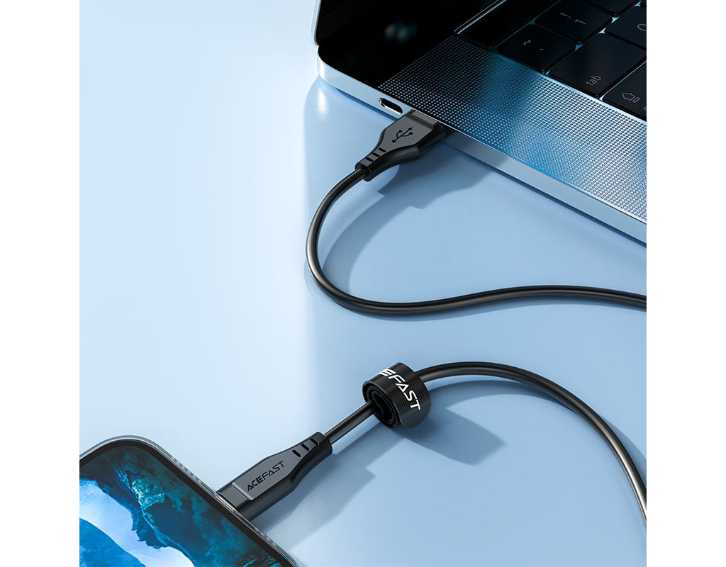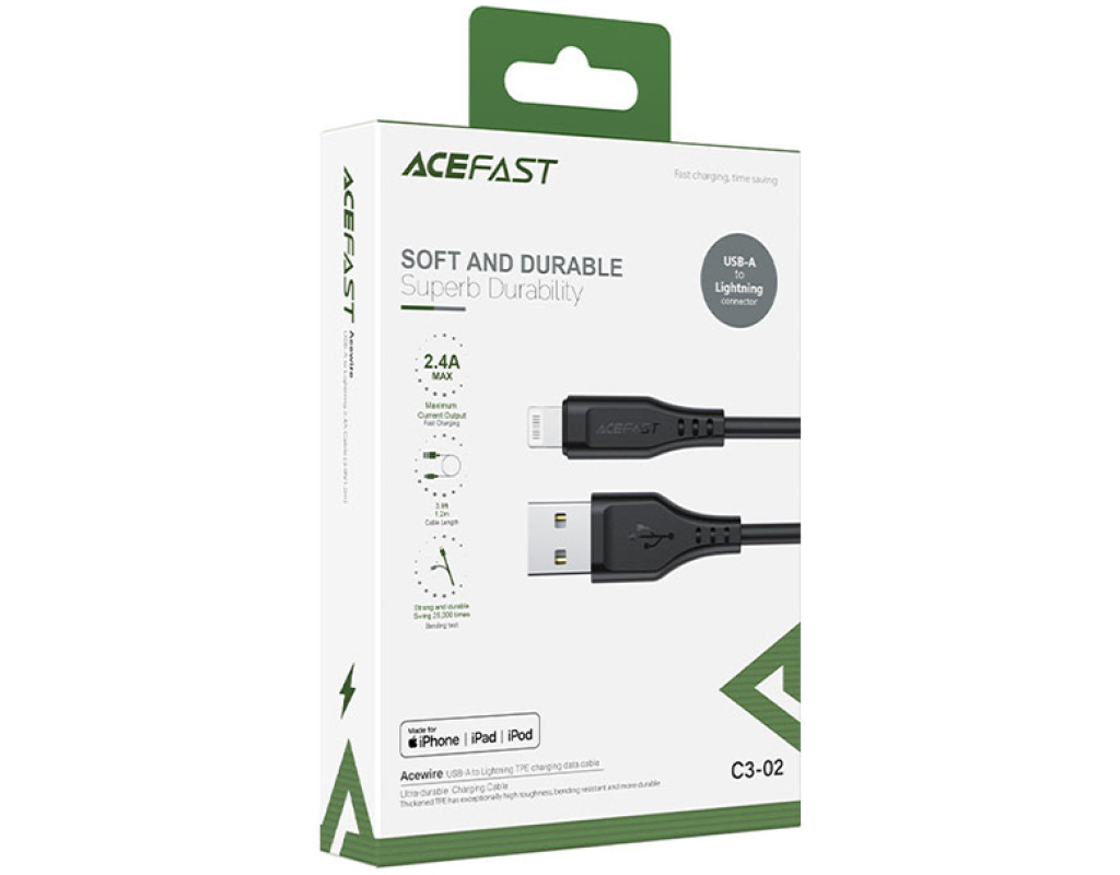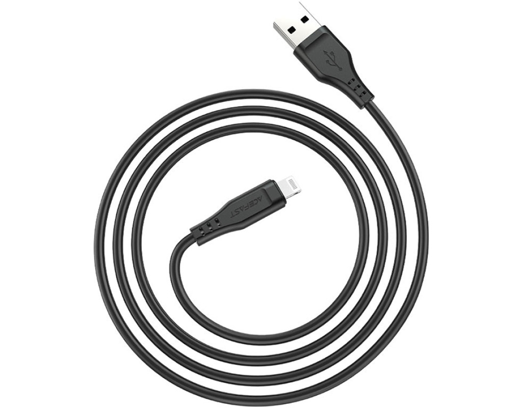 Дата кабель USB 2.0 AM to Lightning 1.2m 2.4A TPE C3-02 Black Acefast (6974316280828)