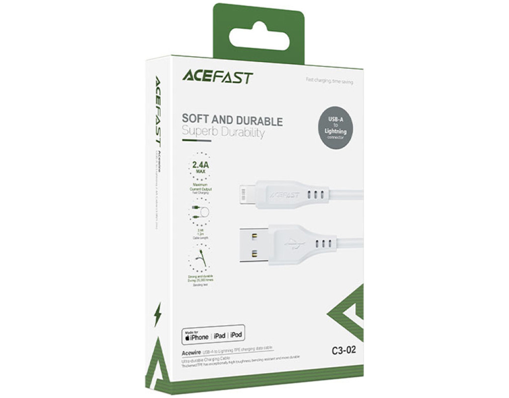 Дата кабель USB 2.0 AM to Lightning 1.2m 2.4A TPE C3-02 White Acefast (6974316280835)