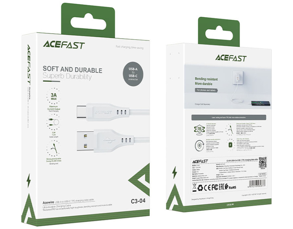 Дата кабель USB 2.0 AM to USB-C 1.2m 3.0A TPE White Acefast (6974316280873)