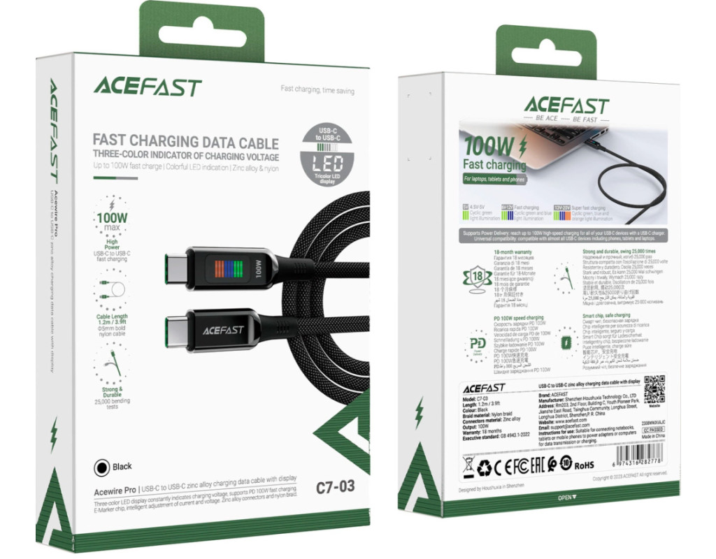 Дата кабель USB-C to USB-C 1.2m 100W with display C7-03 Acefast (6974316282778)