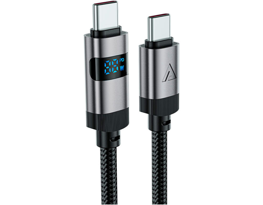 Дата кабель USB-C to USB-C 1.2m 60W digital display C15-03 Black Acefast (6974316283720)