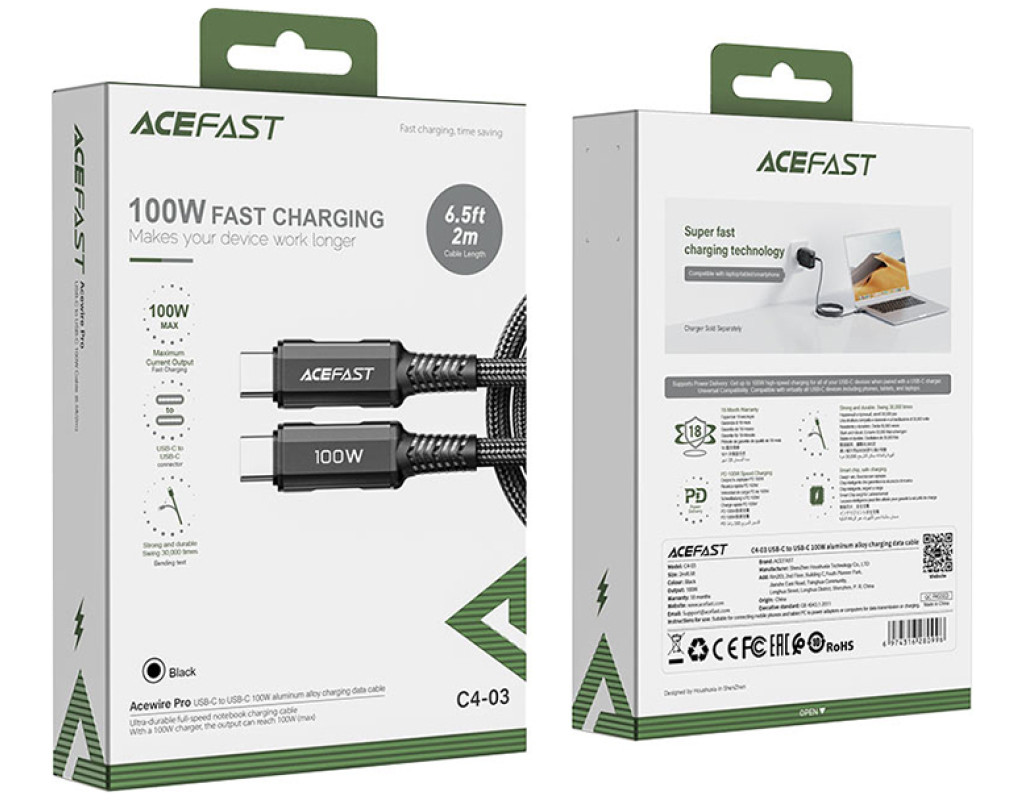 Дата кабель USB-C to USB-C 2.0m 100W C4-03 Acefast (6974316280996)