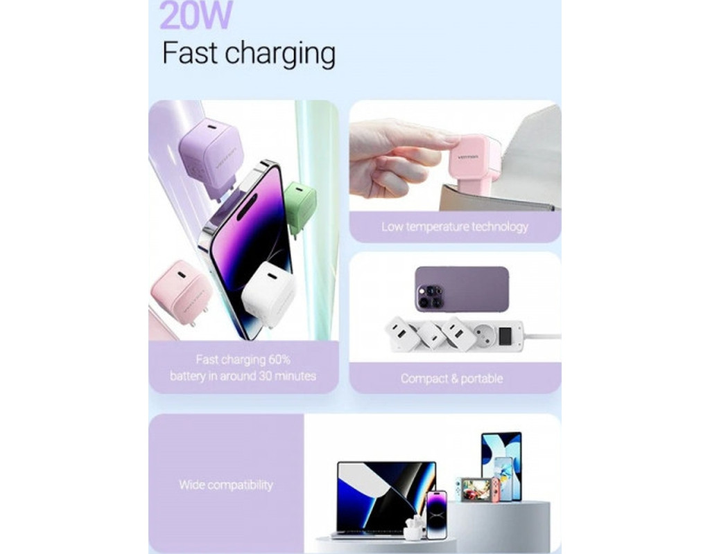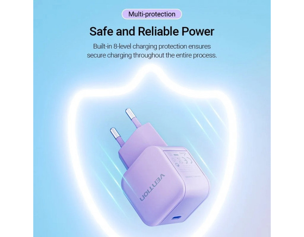 Однопортовое зарядное устройство Vention FEJV0-EU с портом USB Type-С быстро и безопасно поможет пополнить заряд гаджетов Apple, Android и других портативных устройств. Порт USB Type-C поддерживает протоколы быстрой зарядки PD 3.0/PPS/QC 3.0/AFC/Apple 2.4A/BC 1.2 и заряжает устройства с максимальной мощностью 20 Вт. Встроенная защита от короткого замыкания, сверхтоков, перегрузки, перенапряжения, перегрева и электростатики делает зарядное устройство Vention FEJV0-EU безопасным для вас и подключенных устройств. |