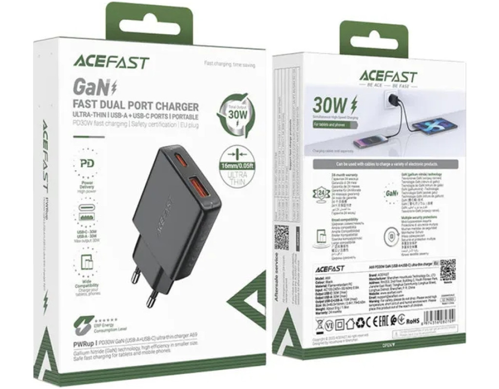 | Acefast A69 2xUSB 30W GaN Ultra-thin Fast Charger Black — это не просто зарядное устройство, а истинный технологический прорыв в мире портативных аксессуаров. Испытайте скорость, качество и надежность, которые обеспечивает этот адаптер, созданный на основе инновационной технологии GaN (нитрид галлия). Благодаря этому, он способен обеспечить максимальную выходную мощность впечатляющих 30 Вт с минимальными энергетическими потерями. Вы сможете заряжать гаджеты вдвое быстрее, чем с помощью обычных сетевых зарядных устройств, благодаря поддержке таких популярных протоколов быстрой зарядки, как Power Delivery 3.0, Quick Charge 3.0, PPS и другие. Это зарядное устройство подходит для самых разнообразных устройств — от смартфонов и планшетов до TWS наушников, фитнес-браслетов и смарт-часов, делая его универсальным выбором для всех ваших технических нужд. Разъемы USB-A и USB-C позволяют подключать сразу два устройства и обеспечивают стабильную и высокоэффективную зарядку. Особое внимание уделено дизайну: ультратонкий корпус, изготовленный из огнеупорного поликарбоната, обеспечивает не только стильный вид, но и безопасность. Выразительные закругленные боковые грани делают этот аксессуар не только эстетичным, но и удобным в использовании, а евро-штекер гарантированно подойдет для большинства европейских розеток. Мощность на выходе регулируется автоматически в зависимости от потребностей подключенных устройств, что позволяет избежать перегрева и сохранить длительный срок службы вашей техники. Acefast A69 — это ваш надежный партнер для мощной и безопасной зарядки в любой ситуации. |