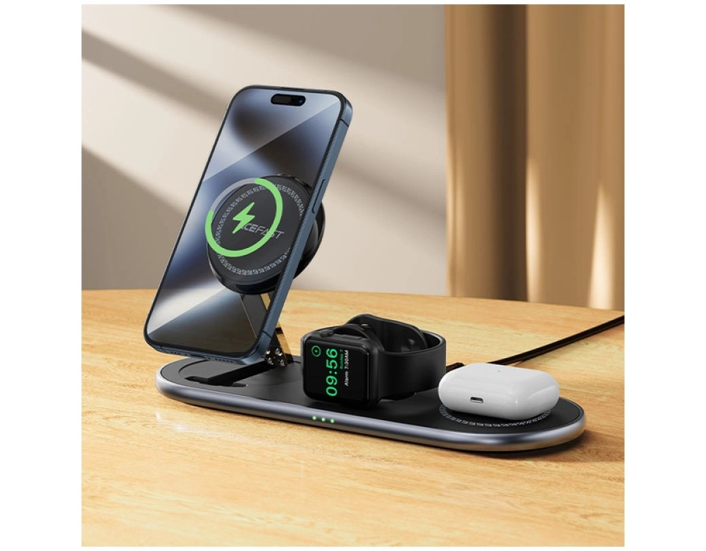 Беспроводное зарядное устройство Acefast E19 Wireless QI 3in1 обеспечит быструю и безопасную индуктивную зарядку устройств, поддерживающих технологию QI, в том числе iPhone. Он совместим с чехлами MAG-Charge. Acefast E19 Wireless QI 3in1 поддерживает зарядную мощность 5 Вт/7.5 Вт/10 Вт/15 Вт. Зарядное устройство позволяет заряжать одновременно смартфон, TWS наушники и смарт-часы с суммарной мощностью 22.5 Вт. Размещайте смартфон вертикально или горизонтально и используйте зарядное устройство в качестве магнитной подставки во время работы. Панели для смартфона и часов можно сложить, когда устройство не используется. Так Acefast E19 Wireless QI 3in1 приобретает компактный размер и становится удобным для хранения и переноски. |