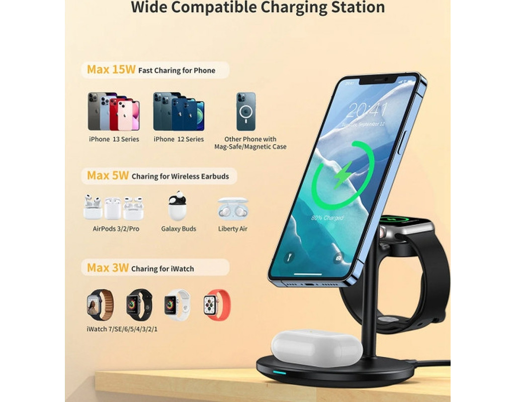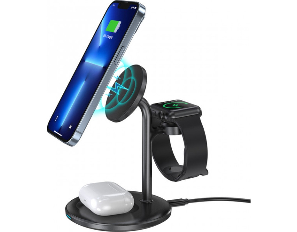 | Зарядное устройство Choetech 15W 3-in-1 Magnetic Wireless Fast Charger black (T585-F-101-CCBK) — это высокотехнологичное решение для современного пользователя, который ценит скорость, удобство и многофункциональность. Этот стильный черный аксессуар станет незаменимым помощником в повседневной жизни, сочетая в себе три функции в одном: зарядку для смартфона, смарт-часов и TWS наушников. Оснащённый по стандарту беспроводной зарядки Qi, это устройство обеспечивает быструю передачу энергии до 15 Вт, а благодаря технологии Fast Charging ваши гаджеты всегда будут заряжены вовремя. Порты MagSafe и USB Type-C обеспечивают универсальность и удобство использования. Особенность этого зарядного устройства — магнитное кольцо, которое позволяет надежную фиксацию устройств во время зарядки, предоставляя возможность использовать смартфон как подставку для удобного просмотра контента. Питание осуществляется через порт USB-C с максимальным выходным током 3 А, что делает устройство адаптивным к разным источникам питания. Дополнительное преимущество — это встроенная система защиты, которая предотвращает перезаряд, чрезмерный ток, перенапряжение и короткое замыкание, гарантируя безопасное использование. Прекрасный выбор материалов, из которых изготовлено зарядное устройство — пластик и металл, обеспечивает его прочность и долговечность. Зарядное устройство Choetech не поставляется с адаптером питания, предоставляя вам свободу выбора оптимального блока питания. Наслаждайтесь эффективностью и качеством зарядки с Choetech T585-F-101-CCBK, вашим надёжным партнёром в мире технологий. |