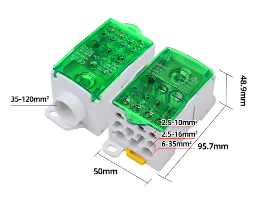 | Паралельний розгалужувач-сплиттер UKK250 призначений для безпечного та ефективного розподілу потужного електричного сигналу від одного джерела на декілька незалежних ліній. Це професійне рішення для організації складних електричних з`єднань у стаціонарних установках, де потрібна висока надійність та відповідність суворим стандартам. Даний спліттер вирішує ключове завдання щодо заміни небезпечних та неестетичних «скруток» проводів, забезпечуючи ідеальний порядок у розподільчих щитах, електрошафах та силових колодках. Він незамінний в енергетиці, промисловій автоматиці, при підключенні потужного освітлення, телекомунікаційного обладнання та альтернативній енергетиці для комутації сонячних панелей. - Безпечне та впорядковане розгалуження силових ланцюгів - Міцне з`єднання без втрати провідності сигналу - Суттєва економія простору в електрощитах - Спрощення монтажу та подальшого обслуговування систем Цей продукт ідеально підходить для професійних електромонтажників, інженерів-проектувальників, сервісних технічних фахівців та монтажників систем альтернативної енергетики. ХАРАКТЕРИСТИКИ: • Конфігурація входів / виходів: 1 вхід на 120 мм², 11 виходів (2х35 мм² + 5х16 мм² + 4х10 мм²) • Номінальний струм: до 250 А • Робоча напруга: до 1000 V AC / DC • Матеріал провідних елементів: Латунь • Габаритні розміри: 95 x 50 x 50 мм • Колір корпусу: зелений Використання розгалужувача UKK250 – це професійний підхід до створення довговічних, безпечних та легко обслуговуваних електричних систем високої потужності. |