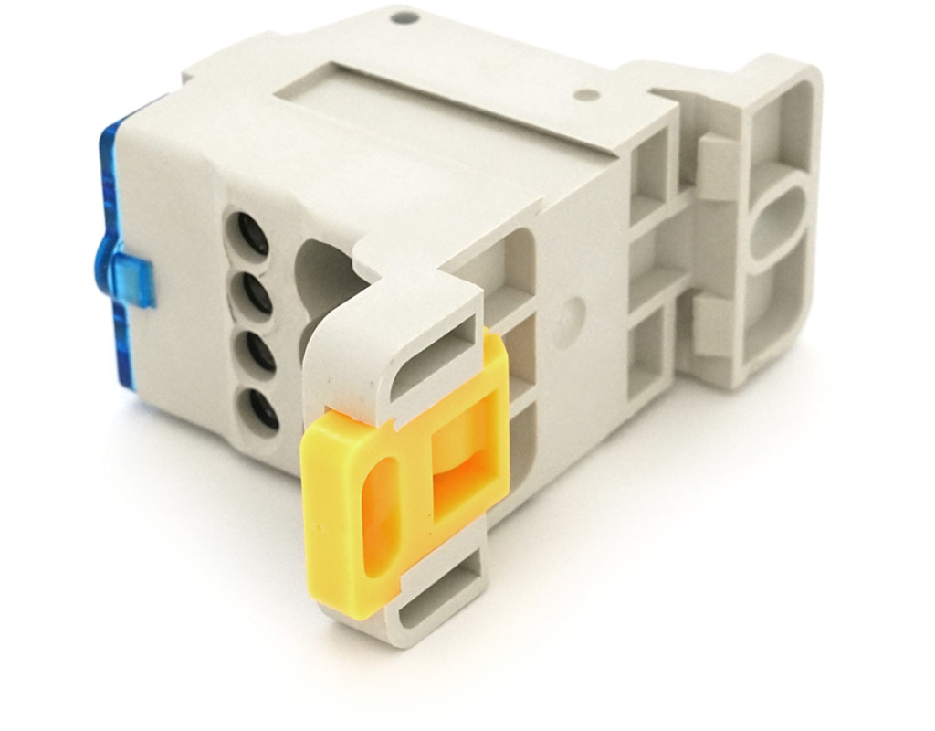 Паралельний розгалужувач-спліттер UKK80, 6 виходів (латунь) 4х6мм²+2х16мм², вхід 1х16мм², AC / DC 1000V, 80А, 75*47*29,4 мм, BLUE