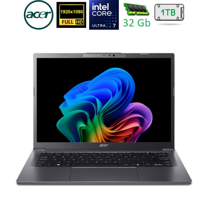 Aspire 14 AI оснащен процессором Intel Core Ultra серии 2 (в максимальной комплектации) и встроенной видеокартой Intel Arc. Он работает без подзарядки в течение всего дня, обеспечивая высокую скорость работы и быстродействие, необходимые для выполнения любых задач, а также плавную работу в многозадачном режиме.