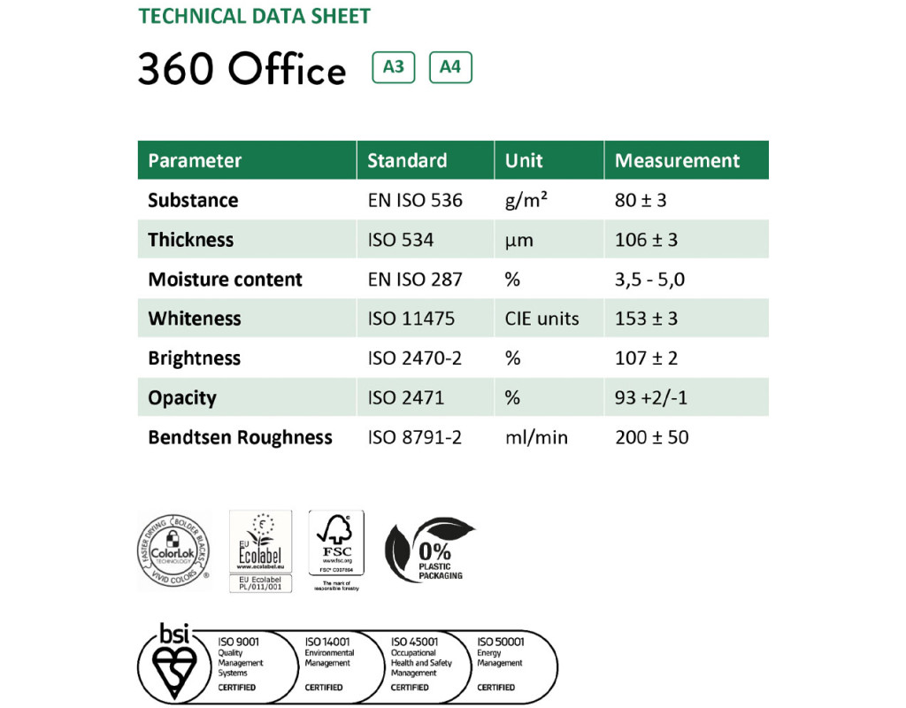 Бумага MM A4 360 Office (5901657018606) - идеальный выбор для офисного использования, сочетающий в себе высокое качество и надежность. Благодаря своему стандартному формату A4 (297 x 210 мм) эта бумага прекрасно подходит для разнообразных задач в офисе, от печати документов до создания раздаточных материалов.