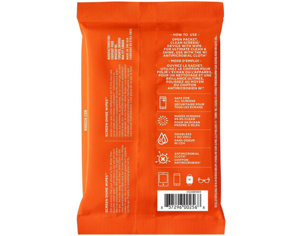 Набір для чищення Whoosh! 20 WIPES — ідеальне рішення, яке дозволить підтримувати чистоту вашої техніки та окулярів усюди, де б ви не були. Серветки для очищення екранів ефективно видаляють відбитки пальців, пил та бруд з екранів ваших гаджетів, лінз окулярів та інших поверхонь. Безпечна нетоксична формула очищувального засобу без спирту та аміаку бережно очистить екрани із захисним покриттям, антивідблиском, оптичні рецептурні лінзи окулярів та інші подібні поверхні, не завдаючи їм шкоди. М’яка неабразивна ганчірка з мікрофібри допоможе позбутись бруду та розводів на поверхнях, що очищаються. Її спеціальне антибактеріальне та антимікробне покриття PROTX2 дозволить легко підтримувати ваші речі у чистоті та усуне неприємні запахи при зберіганні ганчірки. У комплект Whoosh! 20 WIPES входять 20 серветок в індивідуальних упакуваннях та ганчірка розміром 14x14 см. |