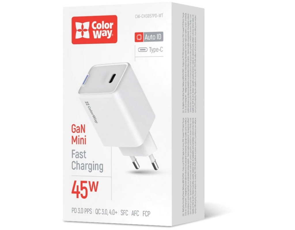 | Зарядное устройство ColorWay GaN Mini 45W PD Port PPS USB-C white (CW-CHS057PD-WT) — это новое слово в мире зарядных технологий, объединяющее инновационную производительность и портативность. Этот адаптер, который работает от сети, станет универсальным решением для зарядки смартфонов, смарт часов, фитнес-браслетов, экшн-камер, TWS наушников и геймпадов. Одна зарядка — максимум энергии! Он оснащен революционной технологией GaN (нитрид галлия), благодаря которой устройство становится более компактным, легким и эффективным, чем традиционные аналоги. Максимальная выходная мощность устройства составляет 45 Вт с выходным током до 3А через единственный USB Type-C порт. Поддержка различных скоростных протоколов зарядки, включая Quick Charge 3.0, Power Delivery 2.0 и 3.0, Quick Charge 4.0 и Programmable PowerSupply (PPS), гарантирует высокую скорость зарядки для всех ваших устройств. Интеллектуальная микросхема USB Auto ID автоматически настраивает оптимальные параметры зарядки для каждого устройства, обеспечивая безопасную и быструю передачу энергии. Многофункциональная защита включает защиту от короткого замыкания, перегрева, перенапряжения и перегрузок током, что сохраняет ваши гаджеты в безопасности. Корпус из огнестойкого ABS-пластика отличается долговечностью и стойкостью к повреждениям. Компактные размеры делают его идеальным спутником в путешествиях и повседневных делах. Выберите ColorWay GaN Mini для удобной, быстрой и надежной зарядки ваших любимых устройств в любом месте. |