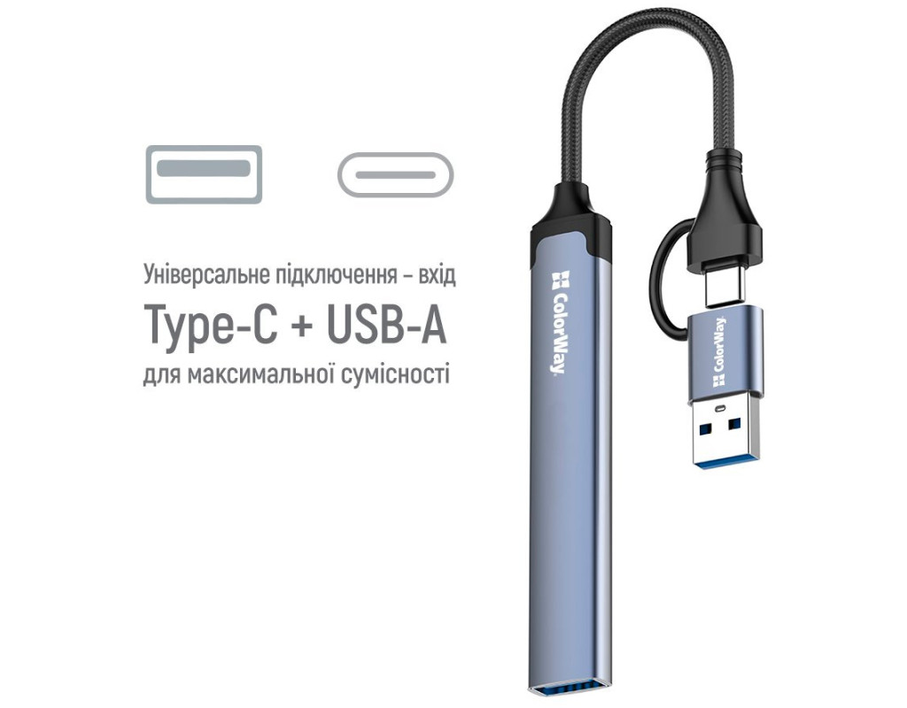 USB-хаб ColorWay 4 в 1 позволяет легко увеличить количество доступных USB-портов и повысить удобство работы с гаджетами. Компактный и стильный аксессуар идеально подходит для ноутбуков, планшетов и смартфонов, обеспечивая быструю передачу данных и универсальную совместимость. Особенности: