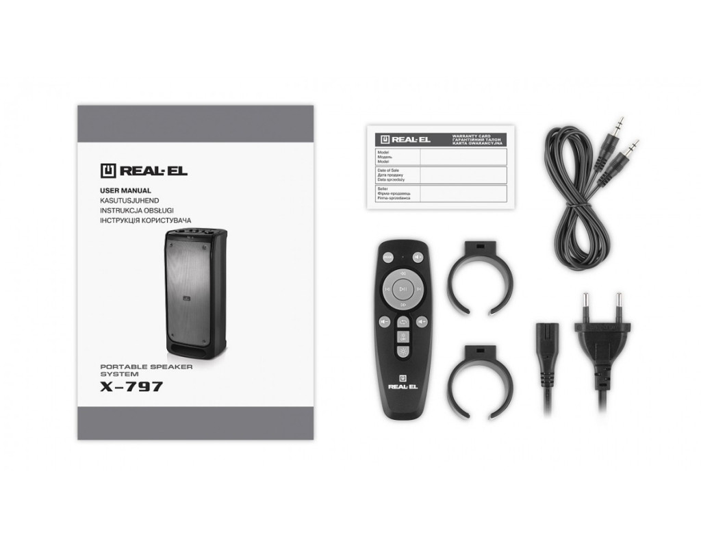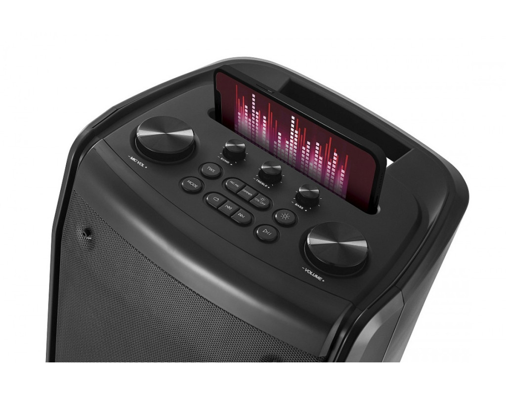 | Акустическая система REAL-EL X-797 (EL121600023) — это результат идеального сочетания стиля, мощи и инновационных технологий, который перенесет вас в мир настоящего звукового удовольствия. Эта портативная акустическая система создана, чтобы впечатлить: она обеспечивает выдающееся качество звука в формате 2.0 каналов, гарантирующее глубокие, насыщенные басы, максимально чистые средние и сияющие высокие частоты. Система имеет впечатляющую выходную мощность 90 Вт, что делает её отличным выбором для качества звука без компромиссов. Благодаря возможности регулирования низких частот вы сможете оптимизировать своё аудио под каждое настроение и событие. Все ваши любимые треки оживают по-новому, когда вы слушаете их через динамичные 8-дюймовые динамики и твитеры, излучающие безупречную акустику. Кроме того, наличие яркой LED подсветки с пятью разнообразными RGB-режимами добавляет атмосферной дерзости любому помещению, создавая живую, эмоциональную обстановку. Для удобства пользователей предусмотрено беспроводное подключение через Bluetooth, что существенно упрощает процесс интеграции с вашими современными устройствами. REAL-EL X-797 оснащена дополнительными интерфейсами, такими как USB, Micro SD и AUX, которые предоставляют максимум возможностей для подключения различных источников звука. Используйте любимые плейлисты с вашего смартфона или флеш-накопителя, а картридер делает процесс использования ещё проще и приятнее. Уникальной функцией этого устройства является возможность подключения через функцию TWS, которая позволяет вам создать стереопару из двух таких систем, удваивая общую мощность до 180 Вт. Это оптимальное решение для проведения масштабных мероприятий, вечеринок или просто наслаждения любимой музыкой на максимуме. Благодаря встроенному аккумулятору система способна работать до 7 часов в автономном режиме. Это позволяет наслаждаться музыкой непрерывно даже при отсутствии электропитания. Кроме того, возможность работы от сети 230 В делает её готовой к любым вызовам. Удобный беспроводной пульт ДУ обеспечивает максимальный контроль над вашей акустической преданностью. Корпус из легкого, но прочного пластика технологично выдерживает частые переезды, позволяя вам легко транспортировать 11.9 кг магического звука туда, куда стремится ваша фантазия. Заполните своё пространство музыкой, почувствуйте эмоции на полную и раскройте новые горизонты звуковых ощущений с REAL-EL X-797 — отличный выбор для тех, кто ценит бескомпромиссное качество звука и стремится к инновационным развлечениям. |