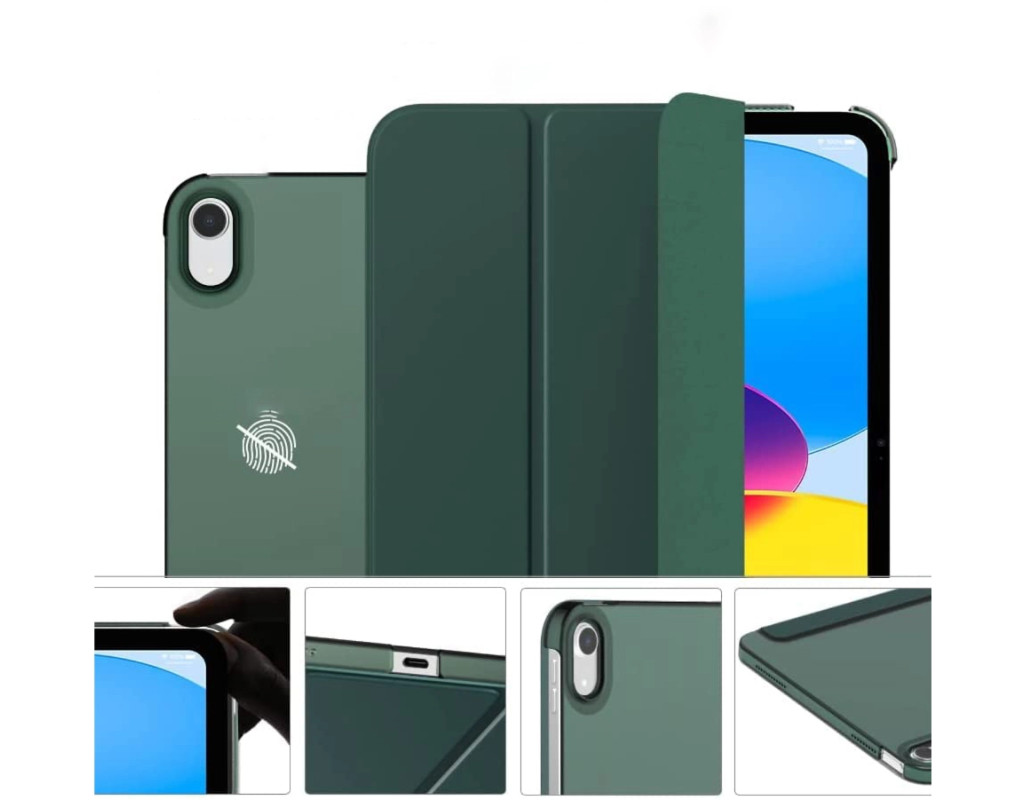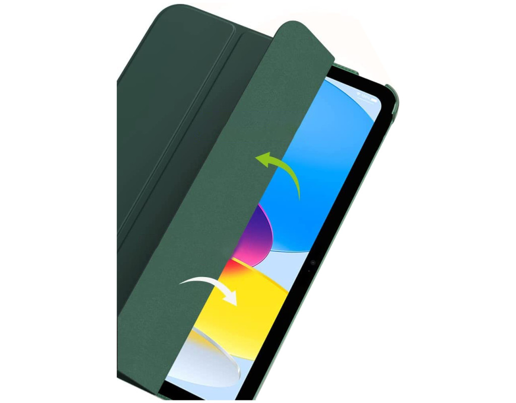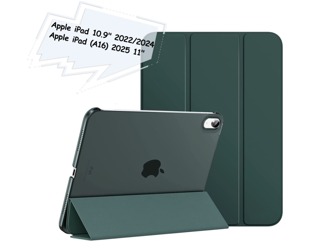 Тип - обложка, совместимость с моделями - Apple iPad 10.9 2022, Apple iPad 10.9 2024, Apple iPad 10.9 2025, диагональ - 10.9, Способ крепления - держатель-рамка, способ закрытия - магнит, Материал - термополиуретан, темно-зеленый