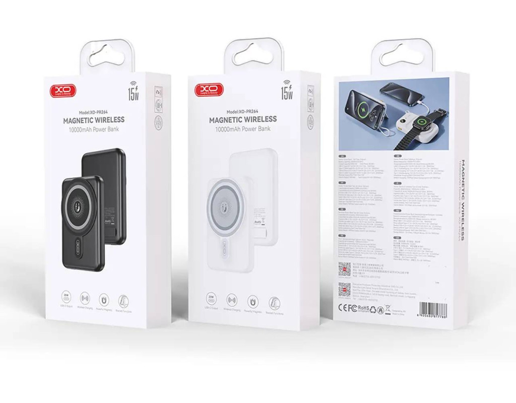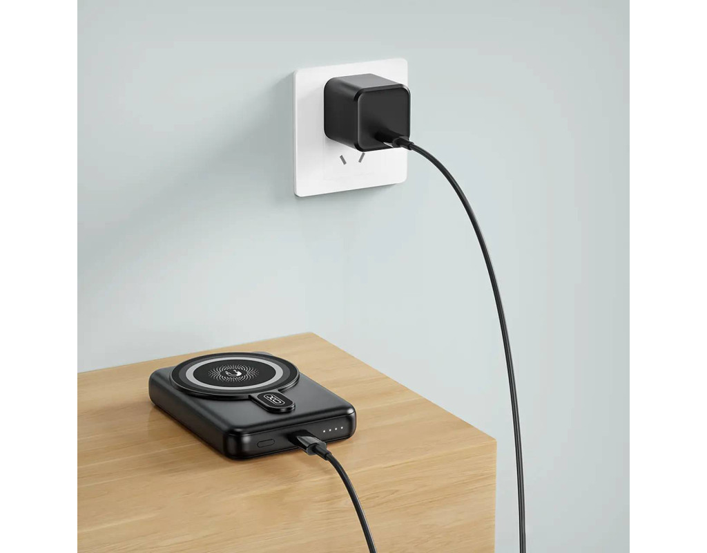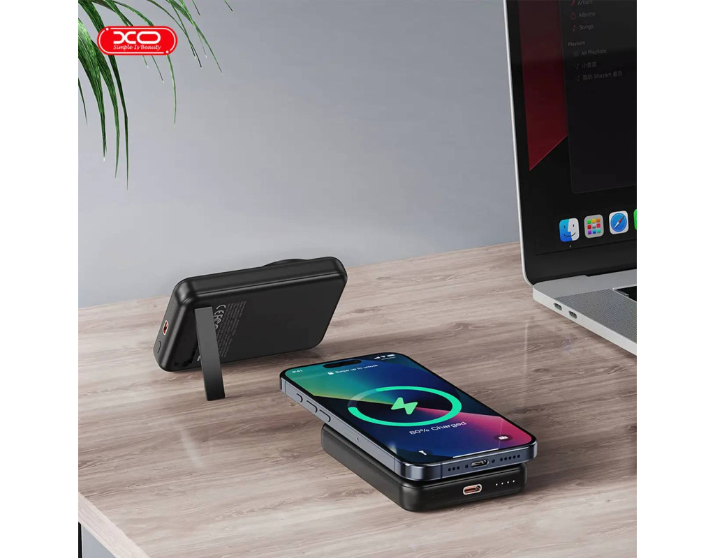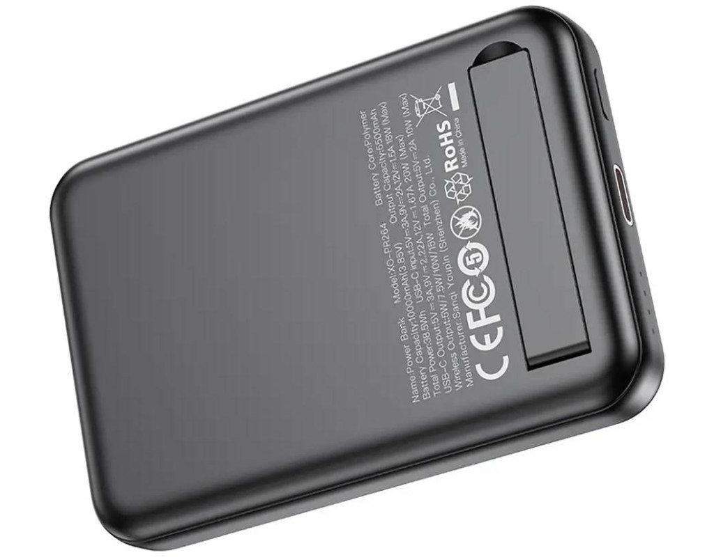 | XO PR264 - это силовой банк с двусторонним портом USB-C, беспроводной зарядкой, стойкой для телефона и все это в компактном чехле.