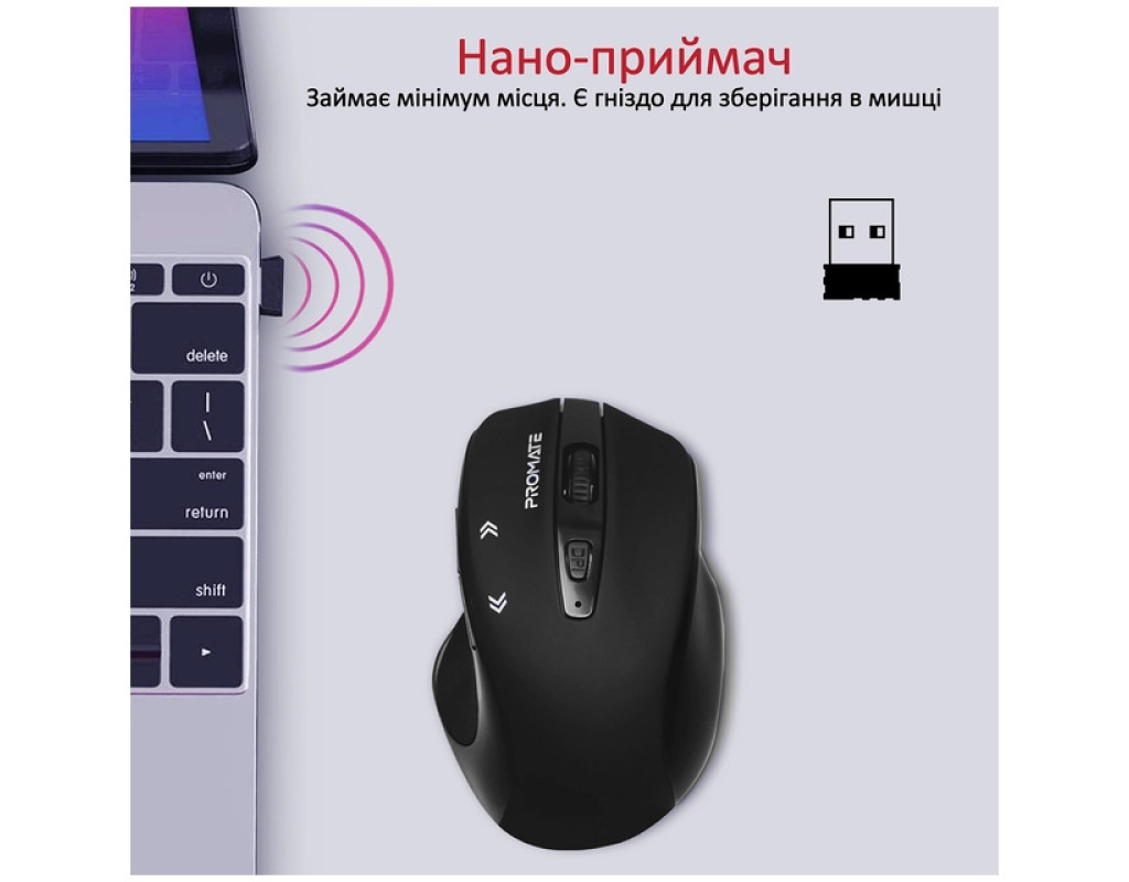 | Мышка Promate Cursor Wireless Black (cursor.black) — это воплощение современных технологий в стильном и элегантном дизайне. Черный цвет придаёт устройству изысканности, гармонично сочетается с любым оформлением рабочего пространства. Это не просто аксессуар, а надёжный партнёр для вашего ноутбука, который обязательно впишется в ваш образ жизни. Разработанная для обеспечения максимального комфорта, мышка имеет эргономичный дизайн, который адаптируется под форму ладони, обеспечивая естественное положение руки. Покрытие софттач и резиновые боковые вставки снижают усталость при длительном использовании, гарантируют надёжный контроль без каких-либо неудобств. Promate Cursor Wireless подключается беспроводно через USB адаптер 2.4 ГГц, что обеспечивает надёжное соединение на расстоянии до 10 метров. Система Plug&Play делает процесс подключения интуитивно понятным: достаточно просто подключить наноприёмник к USB-порту — и мышка готова к действию. Она совместима с различными операционными системами, включая Windows, macOS, Chrome OS и Linux. Особое внимание следует уделить оптическому датчику с разрешением до 1600 dpi, который обеспечивает точность и плавность движений, а три варианта чувствительности — 800, 1200 и 1600 dpi — позволяют настроить устройство под ваши индивидуальные потребности. Это особенно важно для просмотра веб-страниц или работы с графикой, повышая точность и эффективность. Шесть кнопок, которые включают колёсико прокрутки, делают Promate Cursor универсальным решением для любых задач, обеспечивая быстрое перемещение и облегчая многозадачность. Экономичный аспект мыши заслуживает отдельного упоминания: она работает от одной батарейки AA, а функция сна снижает потребление энергии в периоды простоя, что значительно продлевает срок службы батареи. Promate Cursor Wireless Black сочетает в себе высококачественные материалы, передовые функции и продуманный дизайн, делая её незаменимым инструментом для повышения вашей продуктивности. Она станет вашим верным помощником в любых профессиональных или личных задачах, гарантирует удобство и удовольствие от работы. |