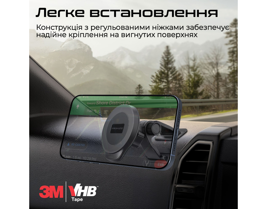 | Promate ArcMount - автомобильный держатель с надежной фиксацией и идеальным креплением на любых изогнутых поверхностях.