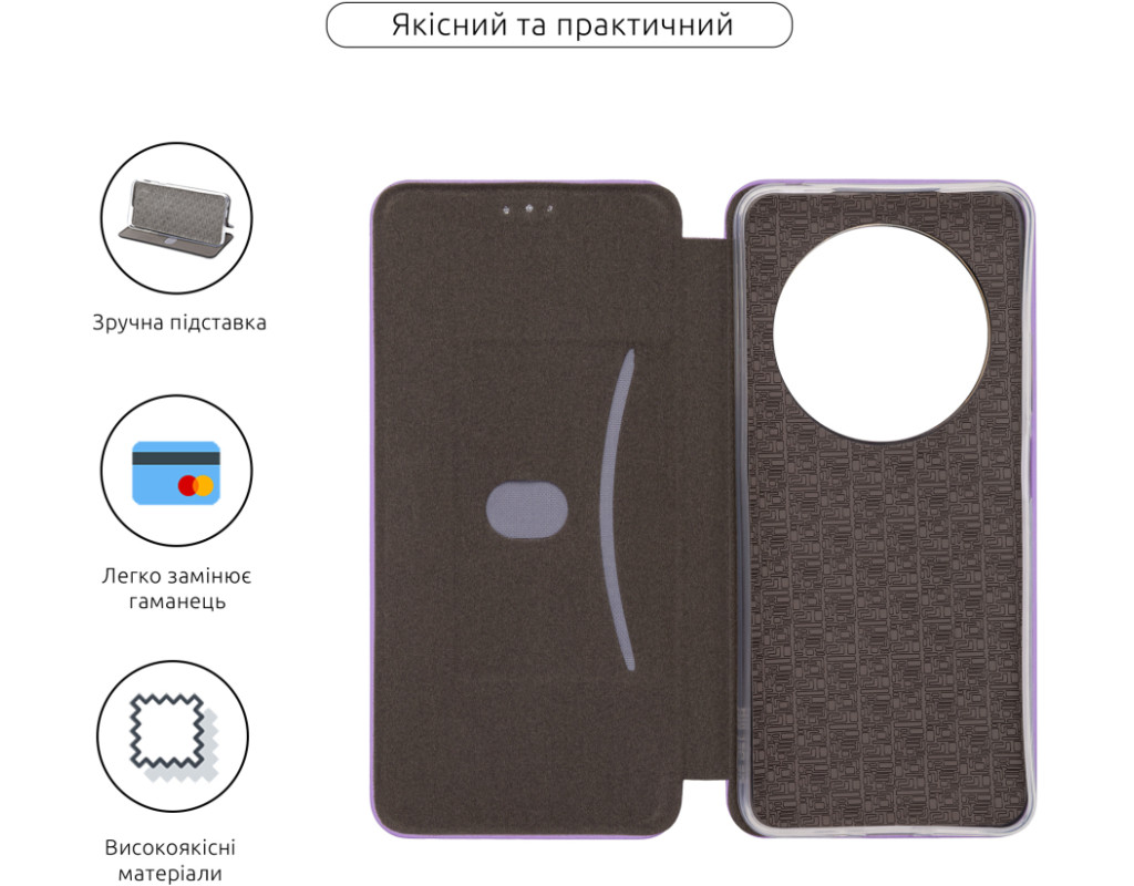 совместимость с моделями - Xiaomi Poco M7 5G, Тип чехла для телефона - книжка, Назначение - модельный, Материал - полиуретан, Цвет - сиреневый