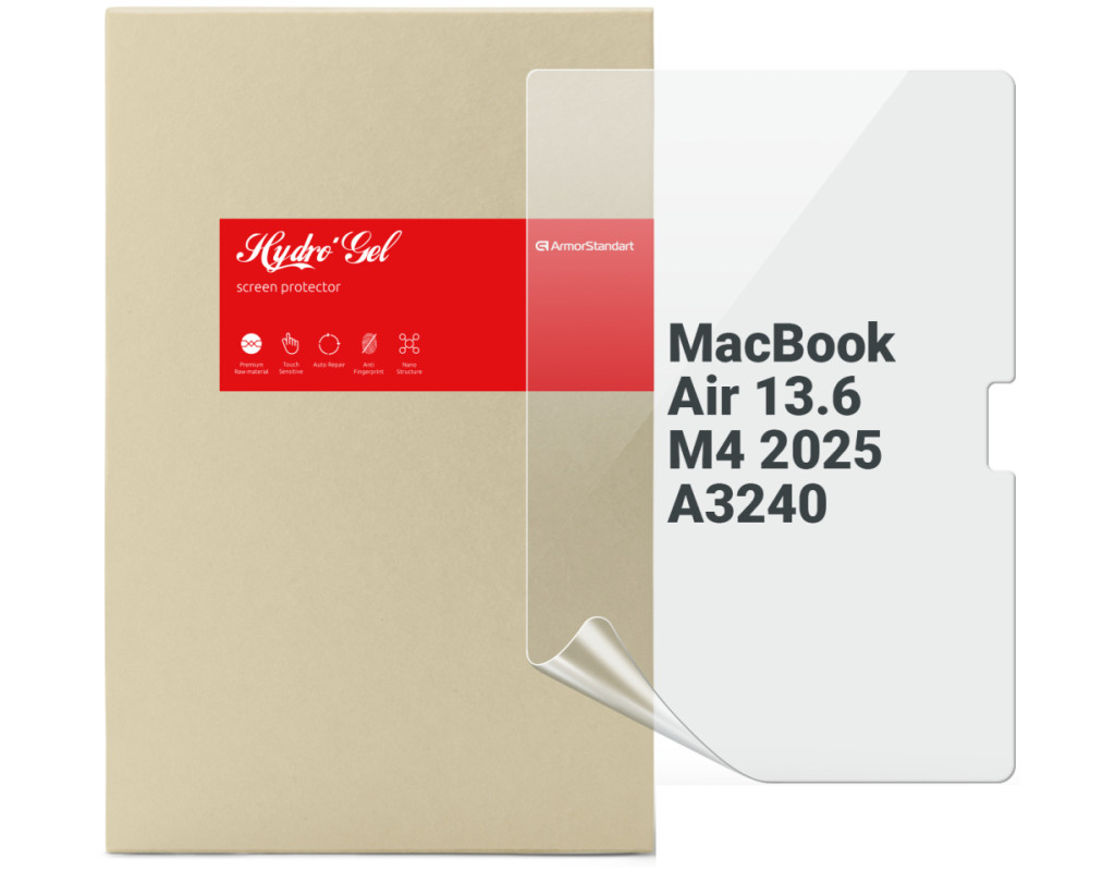Назначение - для ноутбука, Вид покрытия - глянцевое, гидрогелевая, Совместимость с моделями - MacBook Air 13.6 M4 2025, Количество в упаковке - 1 шт