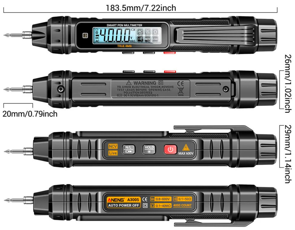 Мультиметр Aneng A3005 — это высококачественный, точный и удобный инструмент для измерения различных электрических параметров, таких как напряжение, ток и сопротивление. Многофункциональность и простота в использовании делают его неотъемлемой частью инструментария любого электротехника, электронщика, и даже для тех, кто только начинает изучать мир электроники. Основные характеристики: