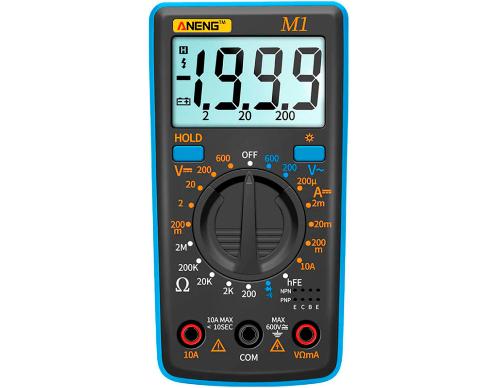 Портативный электронный цифровой мультиметр Aneng M1 с большим дисплеем с подсветкой. Данный прибор позволяет измерять в ручном режиме основные величины, которые используются при диагностике и ремонте различной электроники.