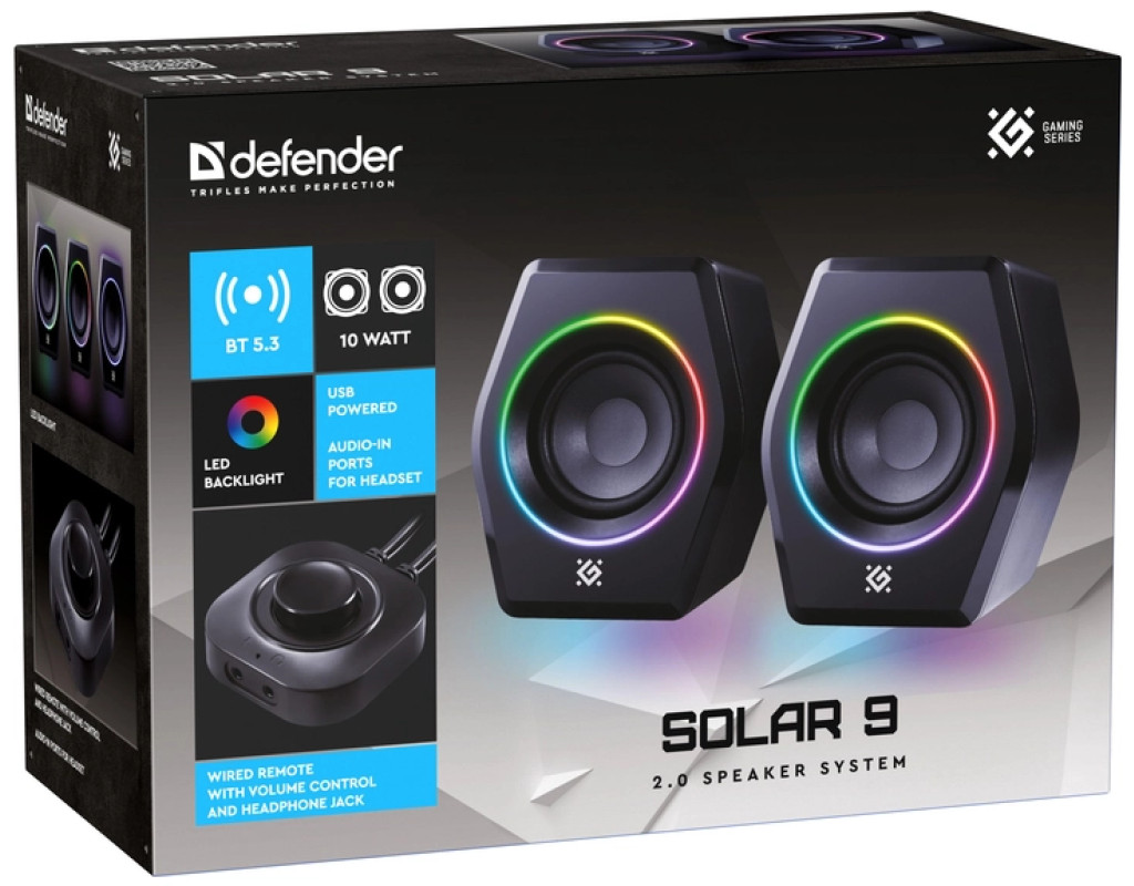 | Акустическая система Defender Solar 9 LED Bluetooth USB Black (65939) - это безупречный выбор для аудиофилов и геймеров, которые ценят качественный звук и современный дизайн. Эти акустические колонки, выполненные в конфигурации 2.0 и оснащенные одним каналом, способны создать впечатляющий аудиоэффект мощностью 10 Вт, обеспечивая слушателям кристально чистый звук и глубокие басы. Благодаря удобному проводному и беспроводному подключению, Defender Solar 9 LED идеально подходит для многофункционального использования с любыми устройствами – от ПК до смартфонов. Основой беспроводной технологии выступает Bluetooth 5.3, который впечатляет своей эффективностью: он обеспечивает вдвое большую скорость и стабильность соединения, при этом обладает увеличенным в четыре раза радиусом действия. Это позволяет наслаждаться музыкой или звуком во время игр без разрывов и задержек обнаружения сигнала. Для любителей традиционного подключения имеется разъем mini Jack 3.5 мм и AUX, что гарантирует совместимость с подавляющим большинством устройств. Ключевым преимуществом является удобно расположенный проводной пульт дистанционного управления, который предлагает интуитивные настройки: с любого устройства можно моментально отрегулировать громкость, выбрать режим подсветки или переключаться между Bluetooth и AUX режимами. Оригинальная LED подсветка с 9 разнообразными режимами придает интерактивности и создает особую атмосферу – это внесет дополнительный слой эмоций во время просмотра фильмов, прослушивания музыки или игр. Колонки изготовлены из высококачественного пластика, что не только обеспечивает стильный внешний вид, но и делает их невероятно легкими – всего 0.76 кг. Это позволяет без усилий перемещать их с одного места на другое или располагать на полках или рабочих столах. Благодаря питанию от USB, колонки обладают широкими возможностями подключения к различным источникам электроэнергии, а для достижения лучшего качества звука рекомендуется подключать их к отдельному USB-адаптеру. Это поможет избежать возможных помех, которые могут возникать при непосредственном подключении к компьютеру. Defender Solar 9 LED Bluetooth USB Black (65939) поражает своим стильным дизайном и инновационными функциями и является идеальным компаньоном для каждого, кто стремится наслаждаться качественным звуком в современном интерьере. Их универсальность и функциональность делают их незаменимыми для любых задач, от домашних развлечений до выполнения рабочих задач. Это больше, чем просто колонки – это средство создания впечатляющего аудиоопыта с безупречным комфортом управления. |