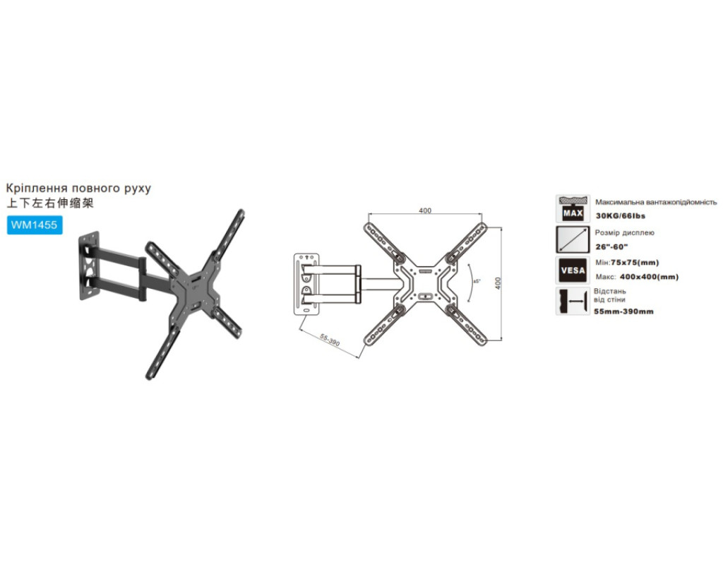 | Кронштейн Ozonehd WM1455 – это идеальное решение для тех, кто стремится оптимизировать своё пространство и обеспечить максимальный комфорт просмотра телевизоров и мониторов. Этот высококачественный аксессуар разработан для удобства пользователя, способен преобразить обычную комнату в мультимедийный центр с отличным обзором из любой точки. Конструкция кронштейна поддерживает экраны с диагональю от 15" до 55", что делает его универсальным для различных помещений, от гостиной до офиса. Совместимость с различными VESA креплениями размером 400 x 400, 200 x 200, 200 x 100, 100 x 100 и 75 x 75 мм гарантирует простоту его установки для большинства современных моделей телевизоров и мониторов. Уникальный поворотно-наклонный механизм кронштейна обеспечивает четыре степени свободы движений. Это позволяет легко изменять угол наклона экрана от -15° до +15° и поворачивать его на +90°~-90°. Благодаря этому возможно настройка идеального угла просмотра, независимо от того, где вы находитесь в комнате. Вынос от стены до 390 мм обеспечивает гибкость в размещении экрана, позволяя устройству удобно адаптироваться к вашим потребностям. Когда экран не используется, кронштейн легко складывается, оставляя расстояние до стены всего 55 мм, что добавляет компактности интерьеру. Надёжность кронштейна Ozonehd WM1455 подтверждена его способностью выдерживать нагрузку до 30 кг благодаря прочной стальной конструкции. Это не только обеспечивает безопасность при эксплуатации, но и гарантирует длительный срок службы без потери эстетичного вида. Инновации продукта включают встроенный уровень для облегчения процесса монтажа, обеспечивая точность и лёгкость установки. Независимо от материала стены, на которой кронштейн будет установлен, монтаж происходит быстро и без лишних усилий, что подчёркивает простоту использования. Выбирая Ozonehd WM1455, вы делаете выбор в пользу свободы и удобства, которые он добавляет вашему отдыху. Этот кронштейн не только крепление, но и инструмент для создания идеального пространства, где просмотр любимых фильмов и шоу превращается в исключительно приятный опыт. |