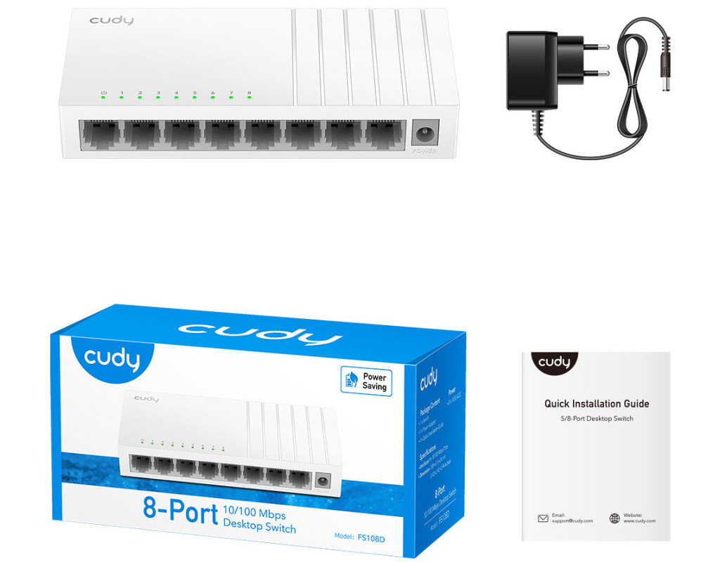 | Коммутатор Cudy FS108D – отличное решение для расширения сети для большего количества устройств, подключение офисных компьютеров к проводной сети, ускорение работы домашних устройств с помощью стабильного Ethernet. Он оснащен восемью портами Fast Ethernet – подключайте к нему игровые консоли, ПК, IPTV, роутеры и чувствуйте все преимущества молниеносного обмена данными без взаимных помех. Коммутатор Cudy FS108D поддерживает функцию Plug and Play, поэтому не требует установки дополнительных драйверов для начала работы. Cudy FS108D выполнен в компактном пластиковом корпусе, с легкостью помещается в большинство распределительных шкафов домашней сети. Монтажные отверстия позволяют прикрепить устройство к стене. |