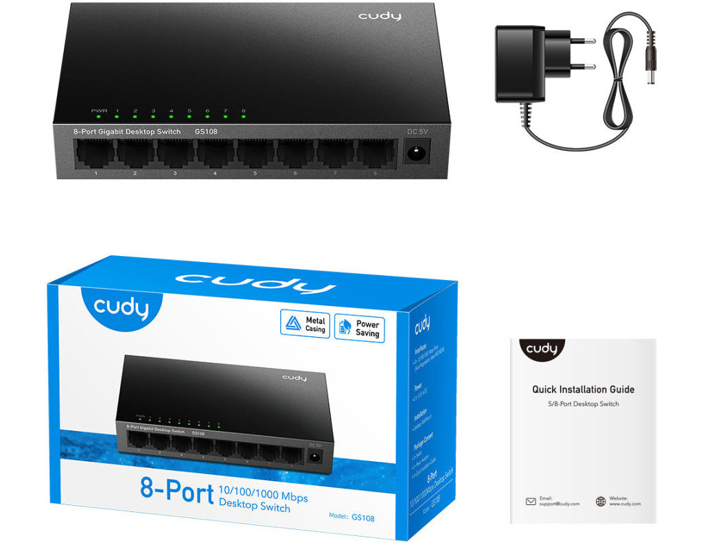 | Коммутатор Cudy GS108 обеспечивает высокую производительность при низком энергопотреблении. Он поддерживает передачу данных на расстоянии до 170 м, поэтому отлично подходит для использования в помещениях большого размера. Он оснащен восемью портами Gigabit Ethernet – подключайте к нему NAS, игровые консоли, ПК, IPTV, роутеры и чувствуйте все преимущества молниеносного обмена данными без взаимных помех. Коммутатор Cudy GS108 поддерживает функцию Plug and Play, поэтому не требует установки дополнительных драйверов для начала работы. Cudy GS108 выполнен в компактном металлическом корпусе, с легкостью помещается в большинство распределительных шкафов домашней сети. Два монтажных отверстия позволяют прикрепить устройство к стене. |