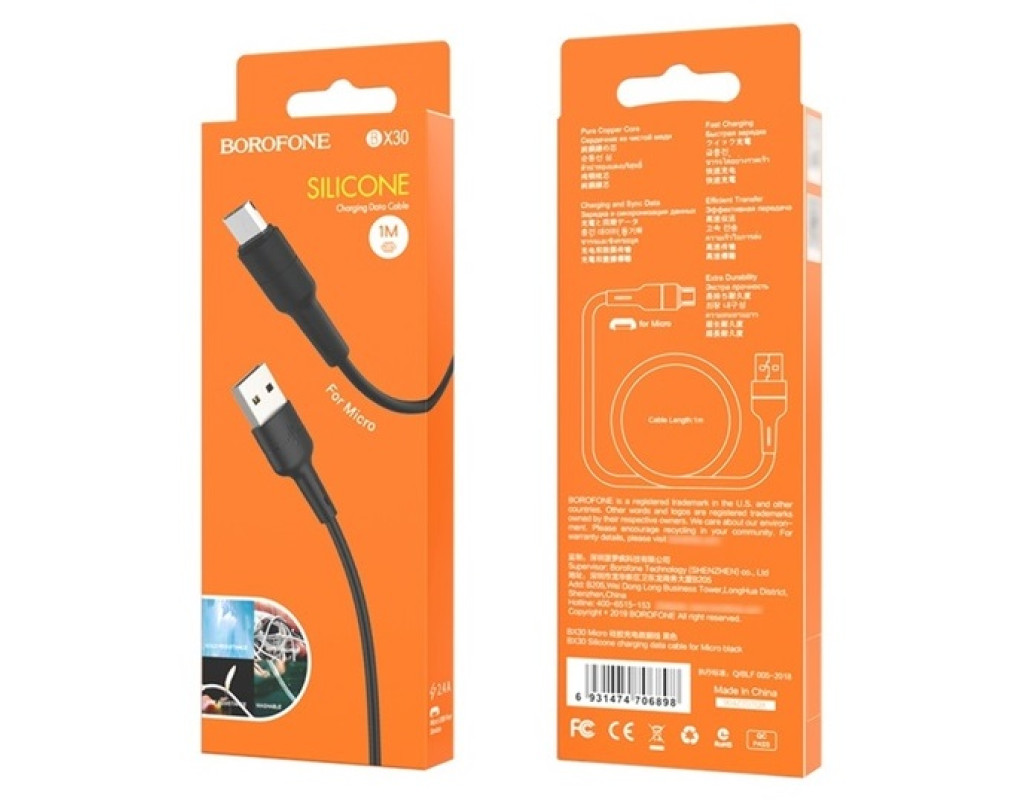| Кабель Borofone BX30 Silicone microUSB USB 2.4 A 1m Black – сохраняет баланс между высоким качеством, исключительным дизайном и доступной ценой.