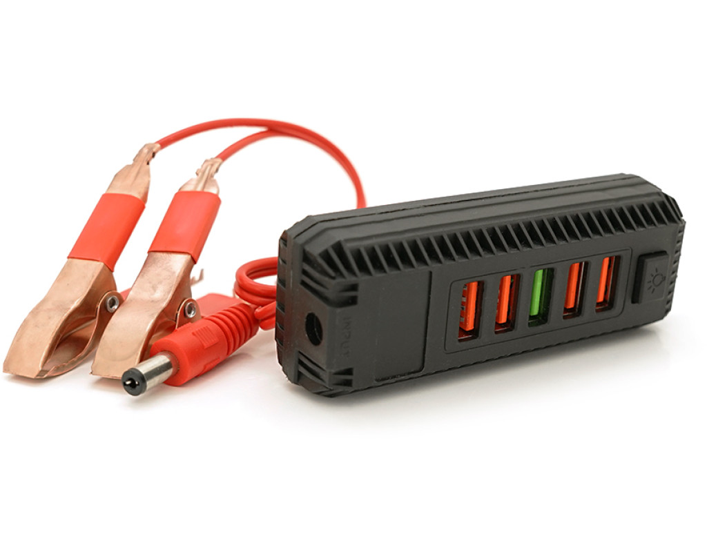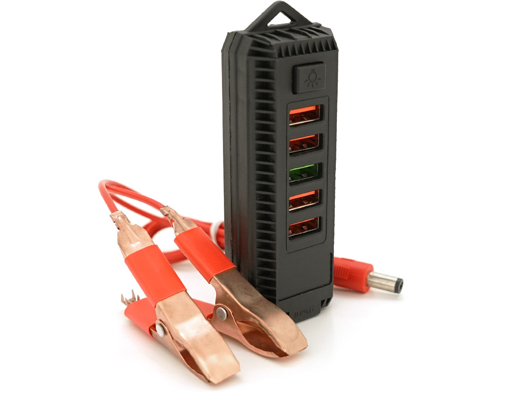 | Портативний HUB із крокодилами на 4*USB2.0+USB3.0, живлення 12В, Black, Box |