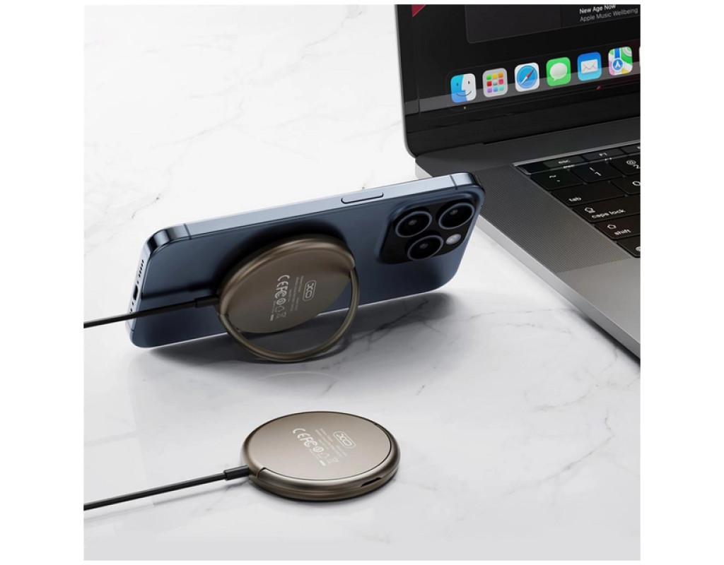 XO CX028 – стильная и компактная беспроводная зарядка с цинковым корпусом и магнитным креплением, которая с легкостью зарядит iPhone. Особенности: