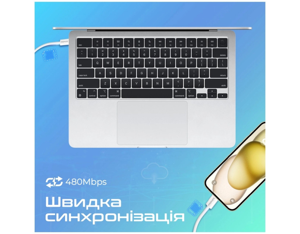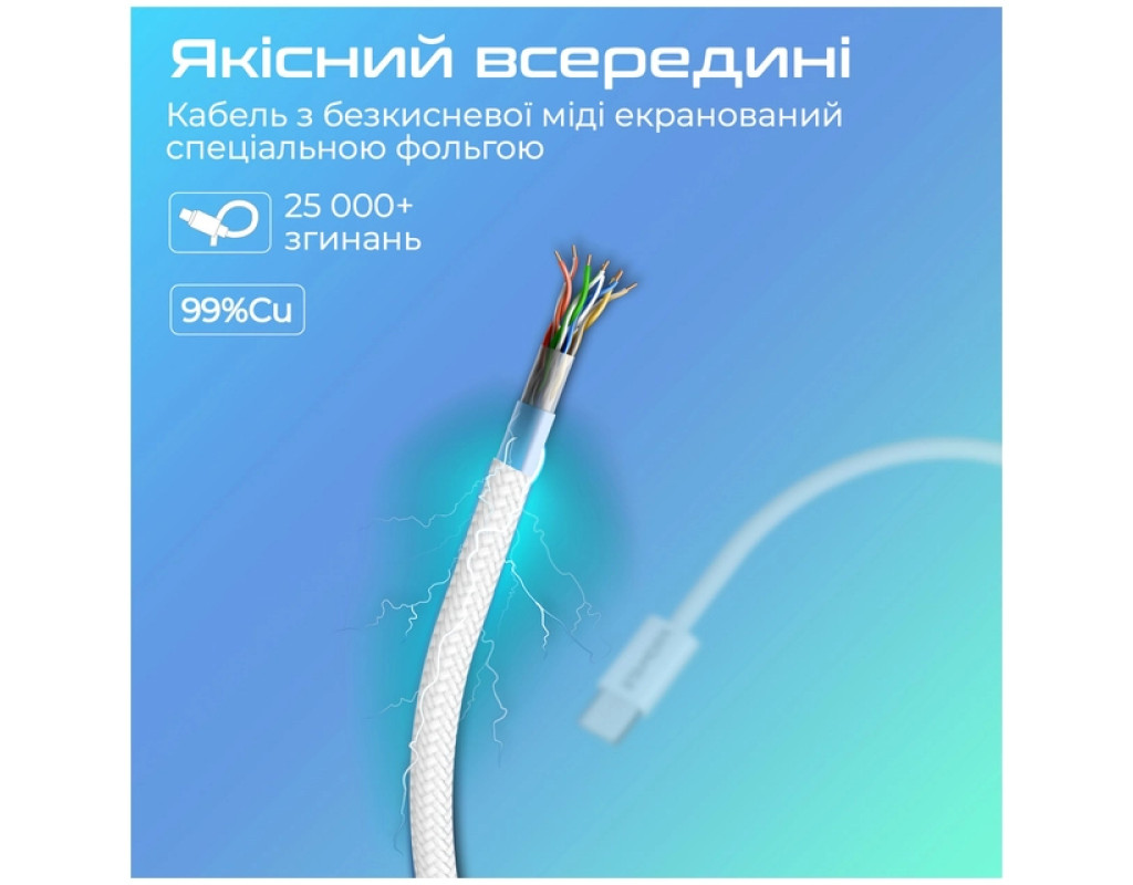 Тип - кабель, Тип коннектора 1 - USB Type-C, Тип коннектора 2 - USB Type-C, длина - 2 м, 60 W, Цвет - белый