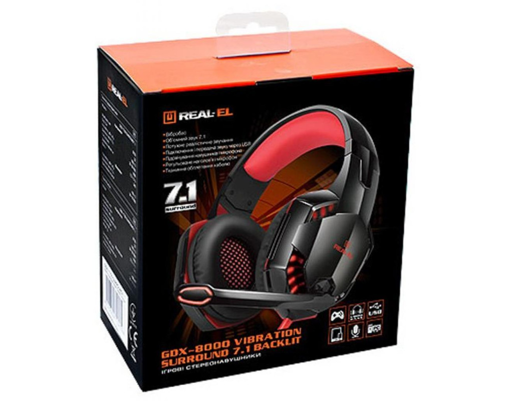 | Наушники REAL-EL GDX-8000 VIBRATION SURROUND 7.1 BACKLIT – это настоящая находка для каждого геймера, которая сочетает современные технологии с высоким качеством звука в стильном дизайне. Этот аксессуар предназначен для использования с компьютерами и ноутбуками, и благодаря проводному подключению через USB Type-A обеспечивает стабильную и бесперебойную передачу звука даже во время самых интенсивных игровых баталий. Конструкция наушников является полноразмерной, а закрытый тип акустического оформления позволяет полностью погрузиться в игровой процесс, изолируя посторонние звуки. С наушниками REAL-EL GDX-8000 вы также ощутите все преимущества объемного звучания 7.1. Это означает, что вы сможете исследовать виртуальные миры с максимальной точностью и реалистичностью, ощущая расположение каждого саундтрека и спецэффекта вокруг вас. Одной из особенностей этих наушников является встроенный вибробасс с регулировкой уровня, который добавляет глубины вашим впечатлениям от игры. Благодаря этому эффекту вы сможете буквально почувствовать мощь каждого взрыва или выстрела, что добавляет несомненной атмосферы вашим игровым сессиям. Удобство использования обеспечивается регулируемым оголовьем и возможностью настройки микрофона, который имеет выносное крепление. Это позволяет найти оптимальное положение для достижения наилучшей четкости голоса при общении с командой. Микрофон обеспечивает передачу звука высокого качества, а благодаря встроенной подсветке наушников и микрофона, ваша игровая станция выглядит чрезвычайно стильно в темное время суток. REAL-EL GDX-8000 отличается наличием пульта управления на кабеле, который обтянут тканевой оплеткой, повышая общую надежность и долговечность продукта. Длина шнура составляет 2.2 м, что предоставляет вам свободу движений во время игры. Наушники выполнены в впечатляющем сочетании красного и черного цветов, что подчеркивает их современный и агрессивный стиль. Имея вес всего 340 г, они не создают дискомфорта даже во время продолжительных сеансов. Продукция торговой марки REAL-EL придерживается европейских стандартов в области качества и безопасности. Компания ориентируется на тенденции рынка и учитывает отзывы потребителей при создании каждого нового продукта. Сочетание инновационных технологий, энергосбережения и практичности делают REAL-EL GDX-8000 VIBRATION SURROUND 7.1 BACKLIT не просто наушниками, а вашим незаменимым компаньоном в мире компьютерных игр. Выбирая REAL-EL GDX-8000, вы получаете не только качественный продукт, но и надежного партнера для беспрепятственного погружения в игровой мир. Сделайте каждую игру грандиозным событием с наушниками, которые учитывают все ваши пожелания и превосходят ваши ожидания. |