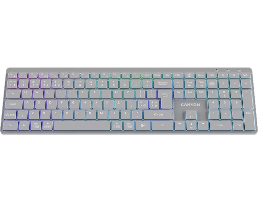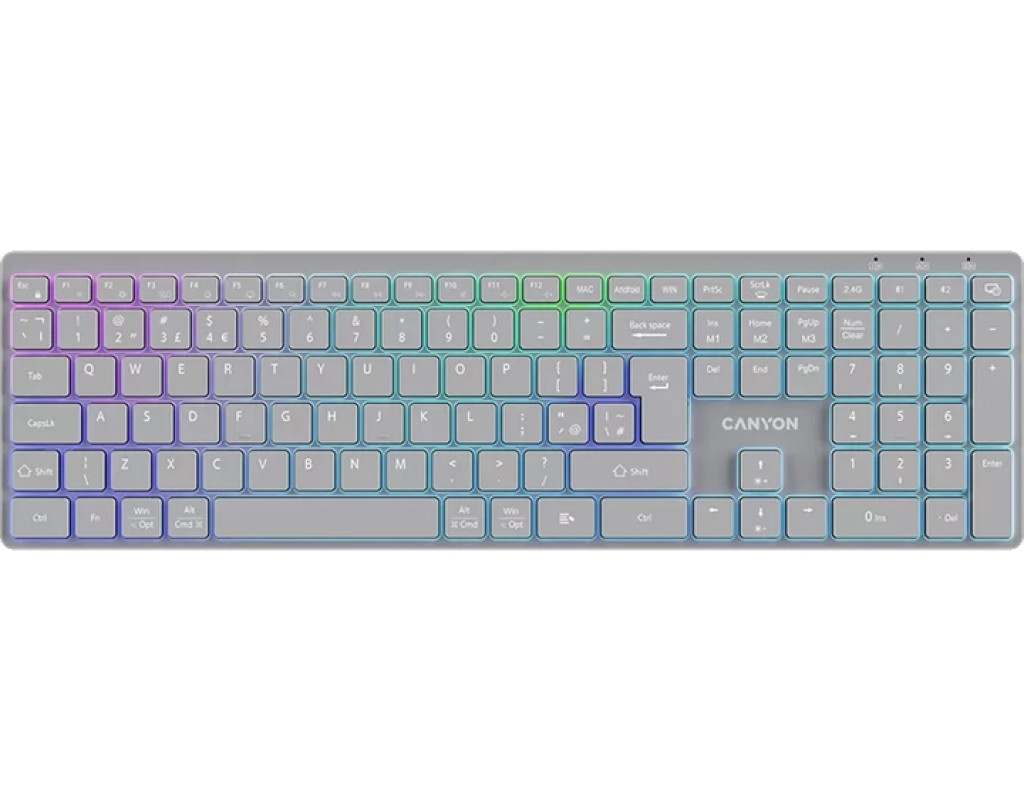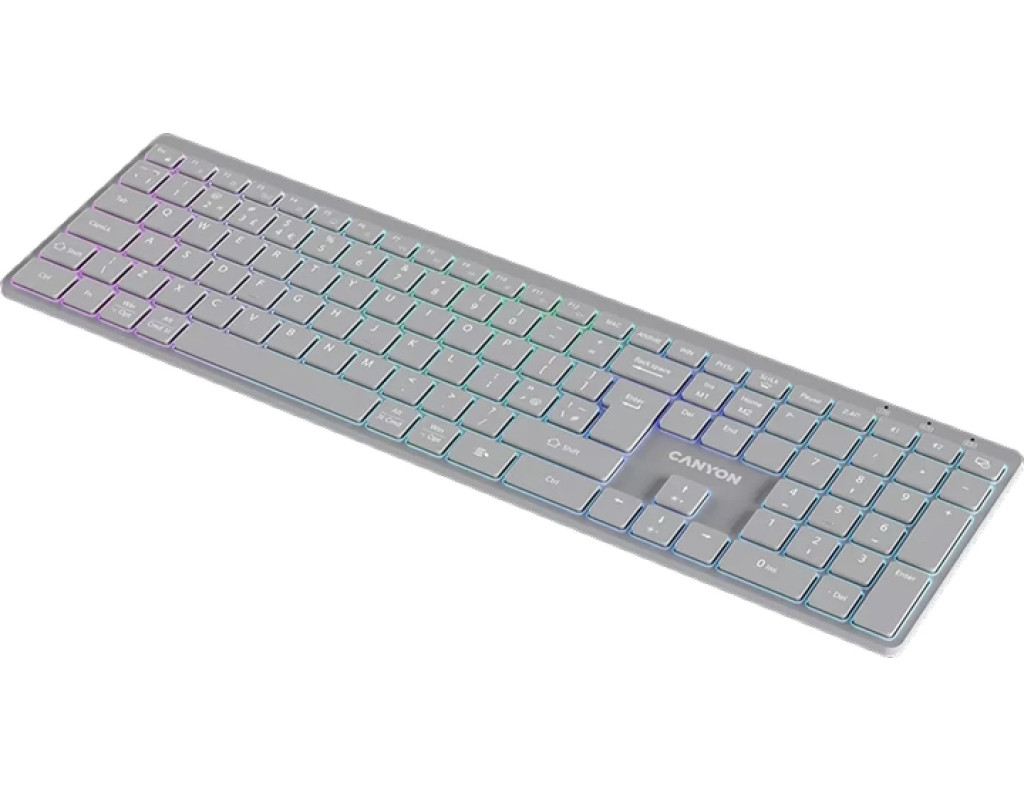 | Клавиатура Canyon HKB-W11 Slim Dual Mode Wireless/Bluetooth RGB UA Grey (CNS-HBTK11G) – это идеальный симбиоз современных технологий и отличного комфорта, созданный для тех, кто ценит эффективность и стиль. Её изящный, элегантный дизайн сразу привлекает внимание, делая её оптимальным выбором для домашнего рабочего места, офиса или активных путешествий. Двойной режим подключения является одним из основных преимуществ этой модели. Благодаря способности работать как через 2,4 ГГц беспроводной адаптер USB, так и через Bluetooth, вы получаете максимальную гибкость в работе с различными устройствами. Переключение между ними происходит чрезвычайно легко, что делает клавиатуру идеальной для многозадачности. Высокое качество исполнения обеспечивается за счет ножничного механизма клавиш, который гарантирует бесшумность и скорость ввода. Каждая клавиша рассчитана на 10 миллионов нажатий, подтверждая надежность и долговечность устройства. Клавиатура имеет полноразмерную раскладку с 113 клавишами и поддержкой украинского и английского языков. Особое внимание стоит обратить на RGB-подсветку клавиш, которая предлагает 7 различных цветовых вариантов. Это не только облегчает работу в условиях недостаточного освещения, но и добавляет рабочему пространству эстетической привлекательности. Уникальные функции, такие как защита от влаги и встроенный литий-полимерный аккумулятор ёмкостью 1600 мАч, значительно повышают удобство использования. Клавиатура устойчива к случайным проливам жидкостей, а автономная работа без подзарядки продолжится длительное время благодаря мощному аккумулятору. Эргономичный дизайн и мультимедийные клавиши добавляют ещё больше удобства, позволяя быстро управлять медиа функциями, такими как регулировка громкости или воспроизведение. Совместимость со всеми популярными ОС, включая Mac OS, iOS, Windows, iPadOS и Android, делает эту клавиатуру универсальным инструментом для любого пользователя. Независимо от того, занимаетесь ли вы критической работой, творчеством или развлечениями, Canyon HKB-W11 станет вашим незаменимым и стильным помощником. |