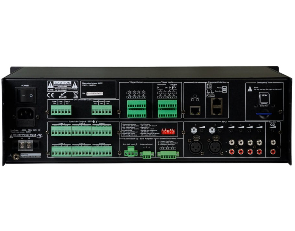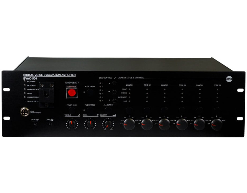Усилитель-контроллер EVAC-500 CMX является главной системой голосового оповещения и эвакуации, мониторинга всех основных сигналов, автоматического оповещения/трансляции сообщений EVAC при чрезвычайной ситуации в местах скопления людей, на территориях предприятий, бизнес-центров, учебных заведений, аэропортов и т.д. Ключевые особенности - 6-зонный контроллер системы оповещения о пожаре;