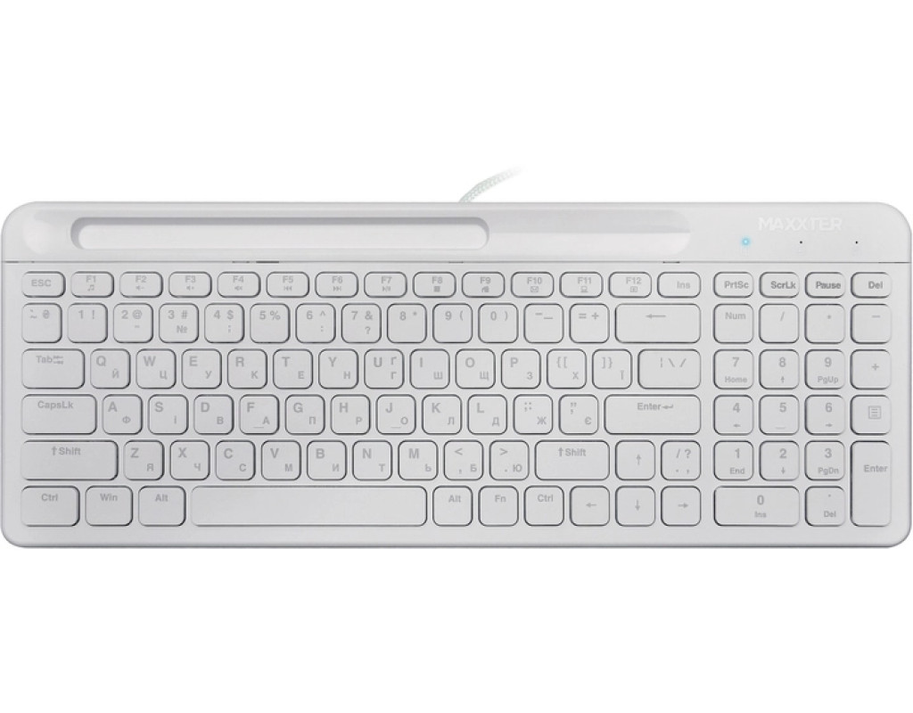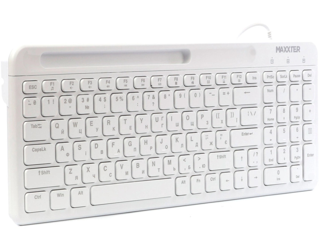 | Клавиатура Maxxter KB-01W-UA USB White (KB-01W-UA) впечатляет сочетанием современных технологий и утонченного дизайна, превращая вашу работу за компьютером в настоящее удовольствие. Как мультимедийное устройство, созданное для ПК, она выделяется своей ножничной конструкцией, что гарантирует чрезвычайно тихое и приятное нажатие клавиш. Это делает её идеальной для работы в спокойных условиях, создавая условия для сосредоточенной работы. Благодаря проводному подключению через USB-интерфейс, вы можете быть уверены в стабильном и надежном соединении с вашим компьютером. Это особенно важно для бесперебойной и эффективной работы. Поддержка операционной системы Windows делает эту клавиатуру универсальным выбором для выполнения различных задач в офисе или дома. Полноразмерный формат клавиатуры с английской и украинской раскладками обеспечивает удобство при вводе текста, удовлетворяя даже самых требовательных пользователей. Компактный дизайн клавиатуры позволяет сохранить ценное пространство на вашем столе, а элегантный белый цвет корпуса обеспечивает стильный вид рабочего места. Maxxter KB-01W-UA также оснащена практичным эргономичным держателем для удобной интеграции планшета или мобильного телефона в вашу рабочую зону, расширяя функциональные возможности. Прорезиненные ножки надежно удерживают клавиатуру на любой поверхности, обеспечивая устойчивый комфорт в использовании. Надежный кабель с оплеткой гарантирует долговечность и защиту от повреждений. Выбирая Maxxter KB-01W-UA, вы выбираете больше, чем просто клавиатуру — вы получаете надежного партнера в достижении своих профессиональных целей, который сочетает в себе качество, эффективность и стиль. |