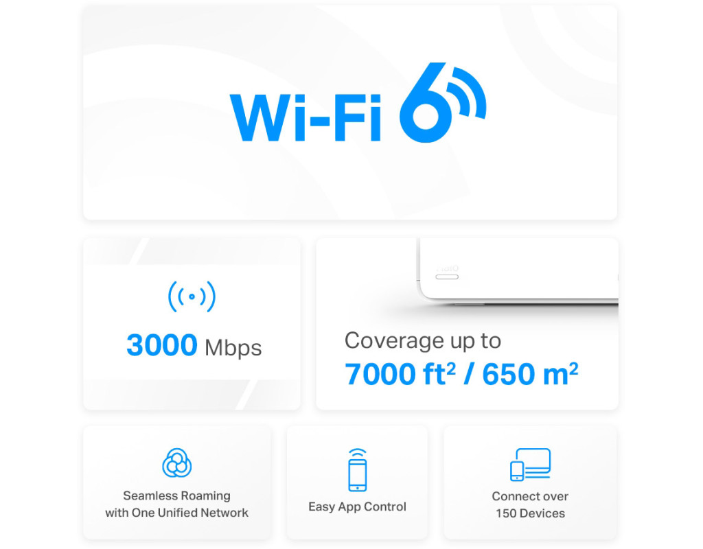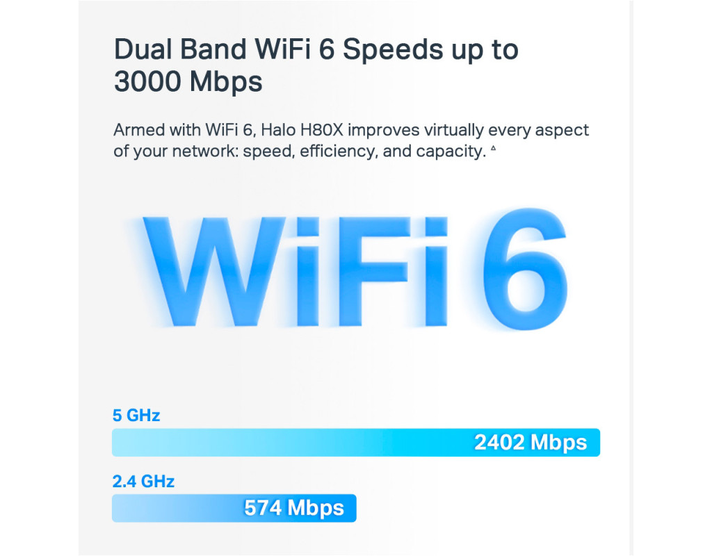 | Двухдиапазонный Wi-Fi 6 со скоростью до 3000 Мбит/с Имея WiFi 6, Halo H80X улучшает практически все аспекты вашей сети: быстроту, эффективность и пропускную способность. Решение WiFi для всего дома Нет ничего хуже, чем ненадежное соединение и скорость Интернета, не соответствующая вашему цифровому стилю жизни. Halo работает как унифицированная система, чтобы гарантировать мощный сигнал WiFi в каждом уголке вашего дома, обеспечивая невероятно быструю и стабильную работу сети. Прерывание и буферизация уйдут в прошлое. Настоящий плавный роуминг с единственной сетью Система Halo автоматически подключает ваши телефоны или планшеты к самому быстрому узлу, обеспечивая поистине бесперебойную работу сети. Больше внезапных перепадов сигнала или задержек Wi-Fi, когда вы ходите по дому. Мощные усилители сигнала Усовершенствованные усилители сигнала и приемники передают мощные и стабильные WiFi сигналы. Формирование луча Поддерживает технологию Beamforming для концентрации мощности беспроводного сигнала на устройстве. Самовосстановление Автоматически выбирает лучший маршрут соединения между Halo, согласно стабильности сети. MERCUSYS поможет вам настроить в нескольких шагах Не имея никаких технических знаний и не читая сложных инструкций, просто следуйте инструкциям в программе. Настройте свою меш-сеть в считанные минуты. Мощный родительский контроль Легко управляйте временем ваших детей онлайн и ресурсами, которые они посещают для создания безопасной и здоровой онлайн-среды. Улучшенная емкость Улучшенный технологией WiFi 6 OFDMA и MU-MIMO, Halo H80X позволяет подключать более 150 устройств одновременно. Наслаждайтесь более эффективной сетью, которая загружается быстрее без снижения производительности. Полноценные гигабитные порты + автоматическое определение WAN/LAN Благодаря автоматическому определению WAN/LAN нет необходимости различать порты WAN/LAN. Это сокращает время и усилия, поэтому вы можете сразу же наслаждаться молниеносной передачей данных Halo H80X на проводные устройства. Благодаря полным гигабитным портам ваши устройства будут работать в 10 раз; быстрее стандартных подключений Ethernet. |