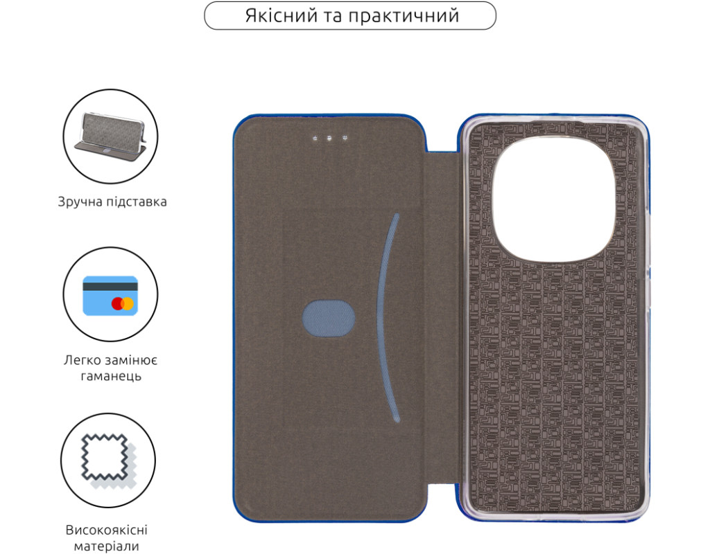 совместимость с моделями - Xiaomi Redmi Note 14 Pro 4G, Тип чехла для телефона - книжка, Назначение - модельный, Материал - искусственная кожа, Цвет - синий
