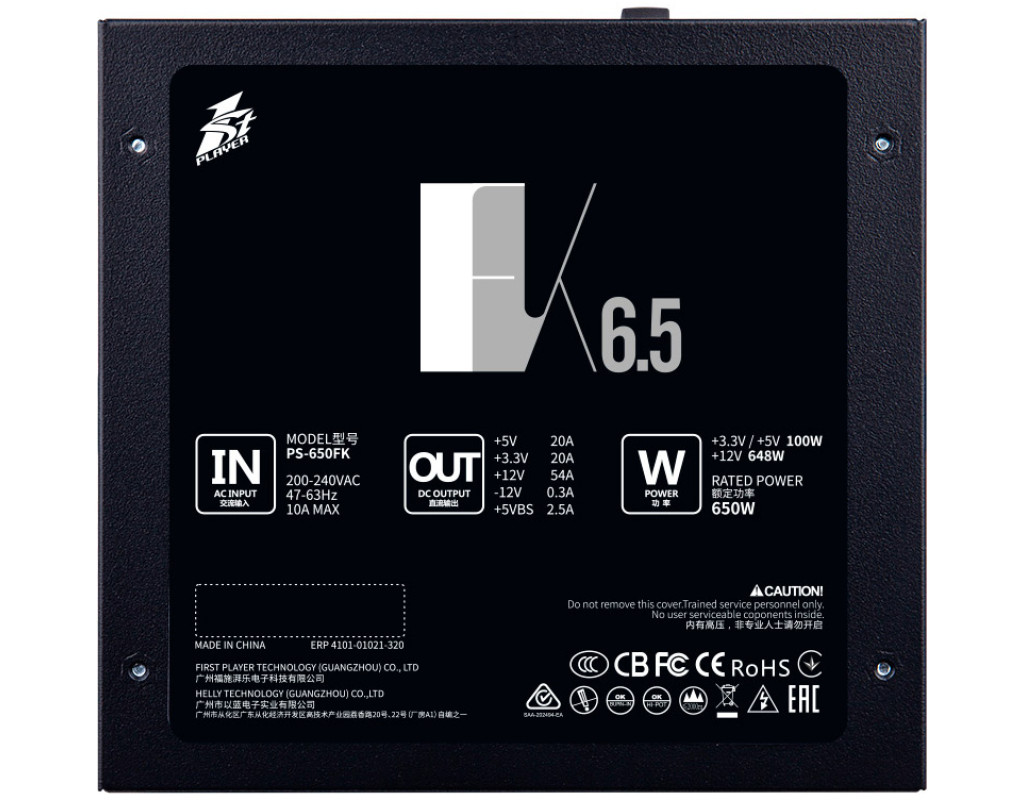Блок питания 1stPlayer PS-750FK (FK-750-BK-EU) 750W – надежное решение для современных компьютерных систем. Этот блок питания форм-фактора ATX с мощностью 750 Вт обеспечивает КПД до 90%, что способствует энергоэффективности и пониженной теплоотдаче. Оснащение активным PFC и технологиями защиты (OPP, OVP, SCP, UVP), он гарантирует безопасность компонентов. Тихий 120 мм вентилятор с уровнем шума до 27.5 дБ обеспечивает эффективное охлаждение. |