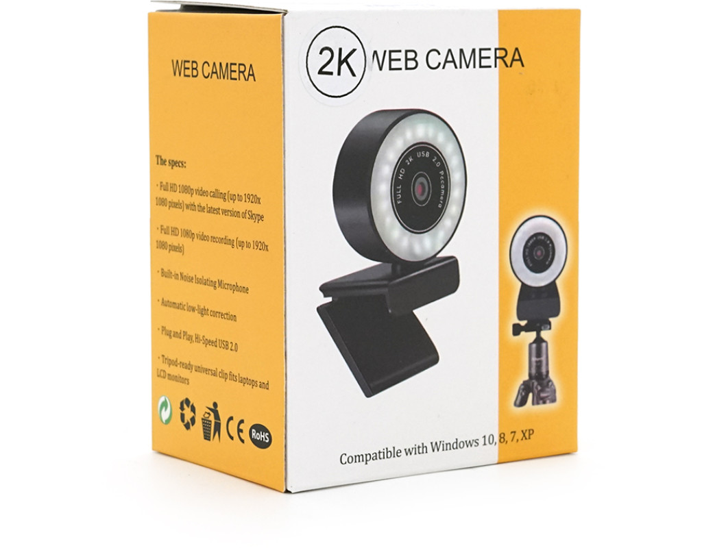 Вебкамера з гарнітурою A06, 2К, підсвічування автофокус, пласт. корпус, Black, Q100