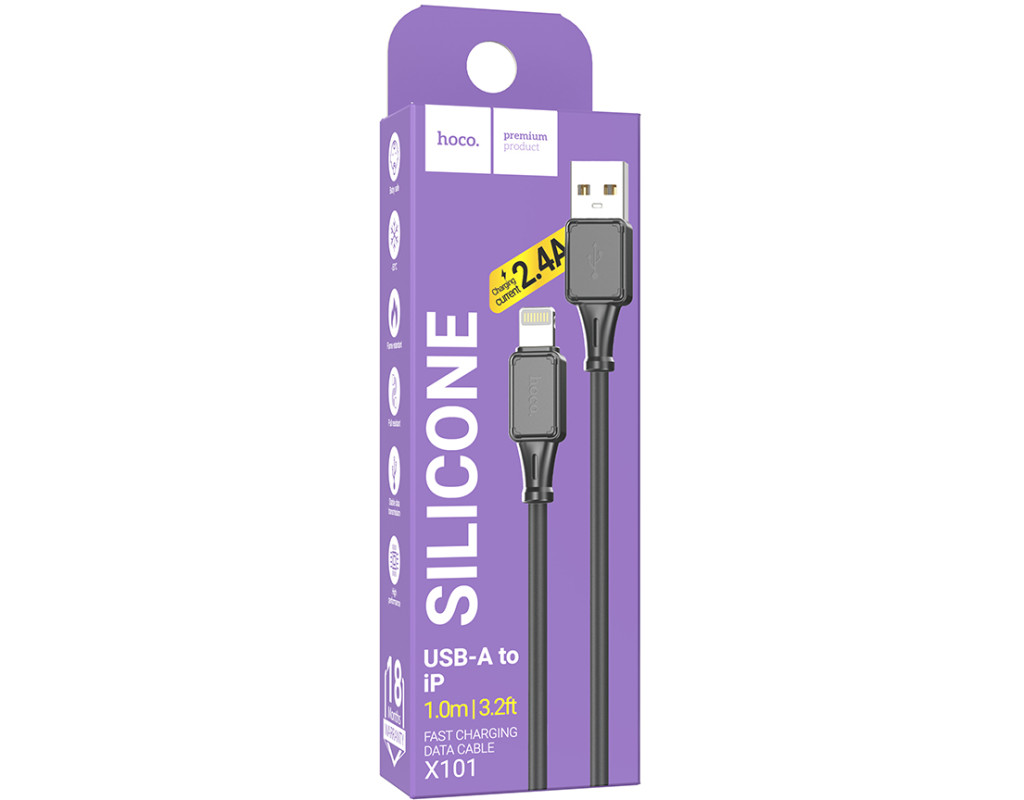 Кабель Hoco X101 Silicone, Lightning-USB, 2.4А, довжина 1м, Black, BOX