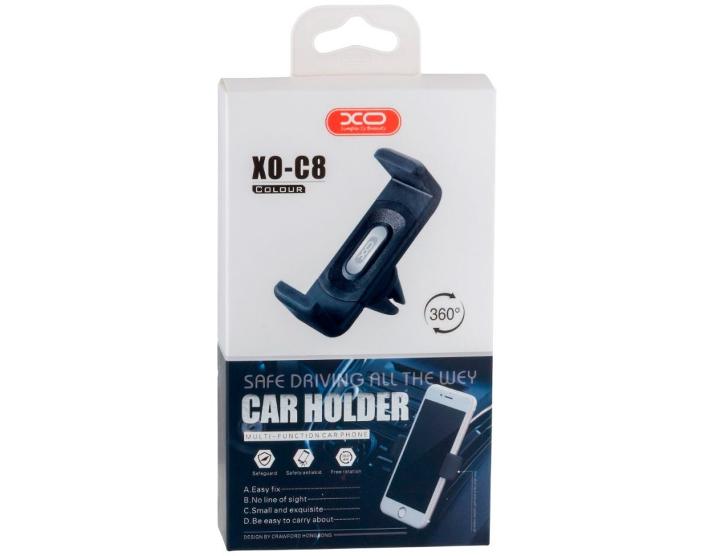 | ХО С8 – универсальный автомобильный держатель, оснащенный прочной пружиной, которая надежно удерживает телефон и предотвращает его выпадение на дороге с ямами.