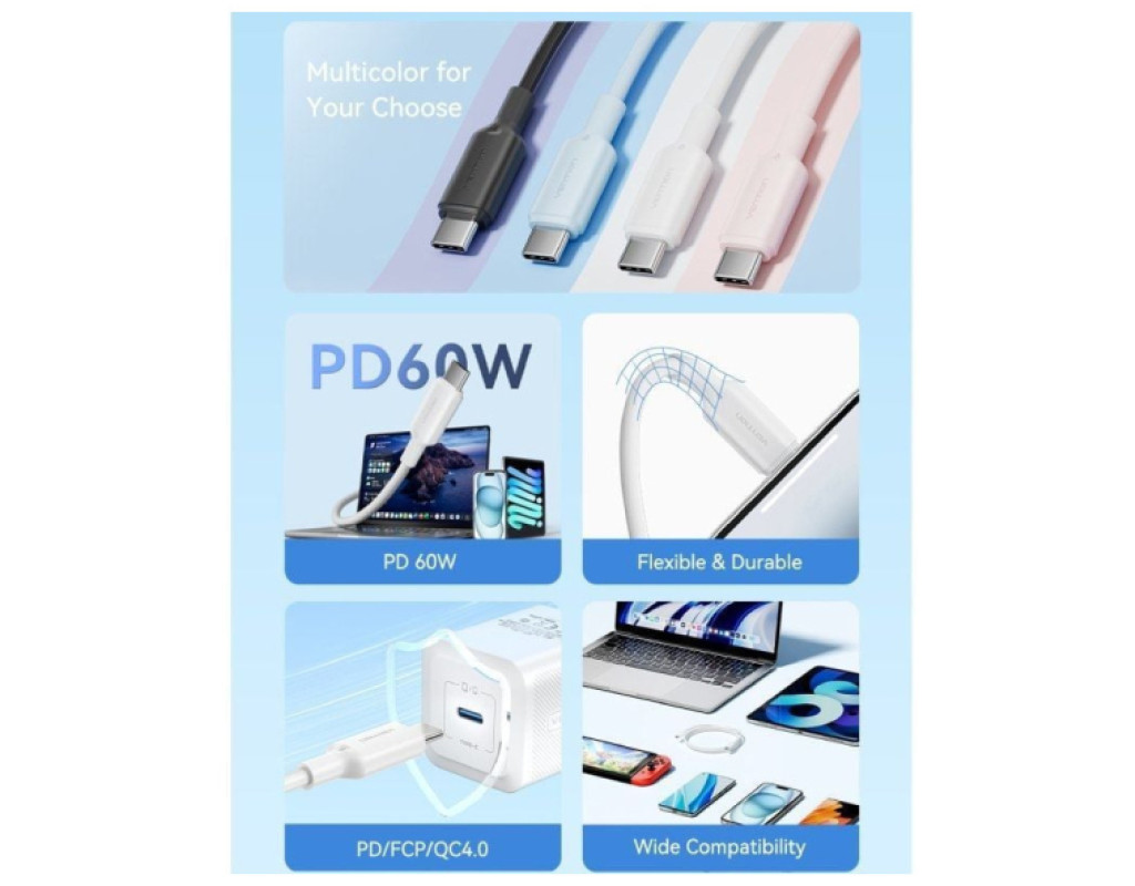 Дата кабеля USB-C to USB-C 2.0m 5A алюминий black VENTION (TRIBH) Это универсальный кабель USB-C → USB-C длиной 2м для зарядки и передачи данных, объединяющий высокую мощность, надежность и долговечность. Модель выполнена из прочных материалов, включая алюминиевые корпуса коннекторов и тканевую оплетку, что делает его устойчивым к изгибам и механическим повреждениям. Основные преимущества: Высокая мощность зарядки Поддерживает ток до 5A, что позволяет обеспечивать мощную зарядку современных устройств, включая смартфоны, планшеты, ноутбуки и другую USB-C технику (при условии совместимого адаптера). Надежная конструкция Корпус коннекторов из алюминиевого сплава и тканевая оплетка кабеля повышают его устойчивость к износу, изгибам и повседневным повреждениям. Такая конструкция служит длиннее, чем стандартные пластмассовые кабели. Оптимальная длина Длина 2метра делает кабель удобным для использования как дома, так и в офисе или в дороге – вы можете не сидеть у адаптера или ноутбука, а комфортно пользоваться устройством на расстоянии. Передача данных и зарядка в одном Этот кабель предназначен не только для подзарядки, но и для синхронизации/передачи данных, что делает его универсальным аксессуаром для различных задач. |